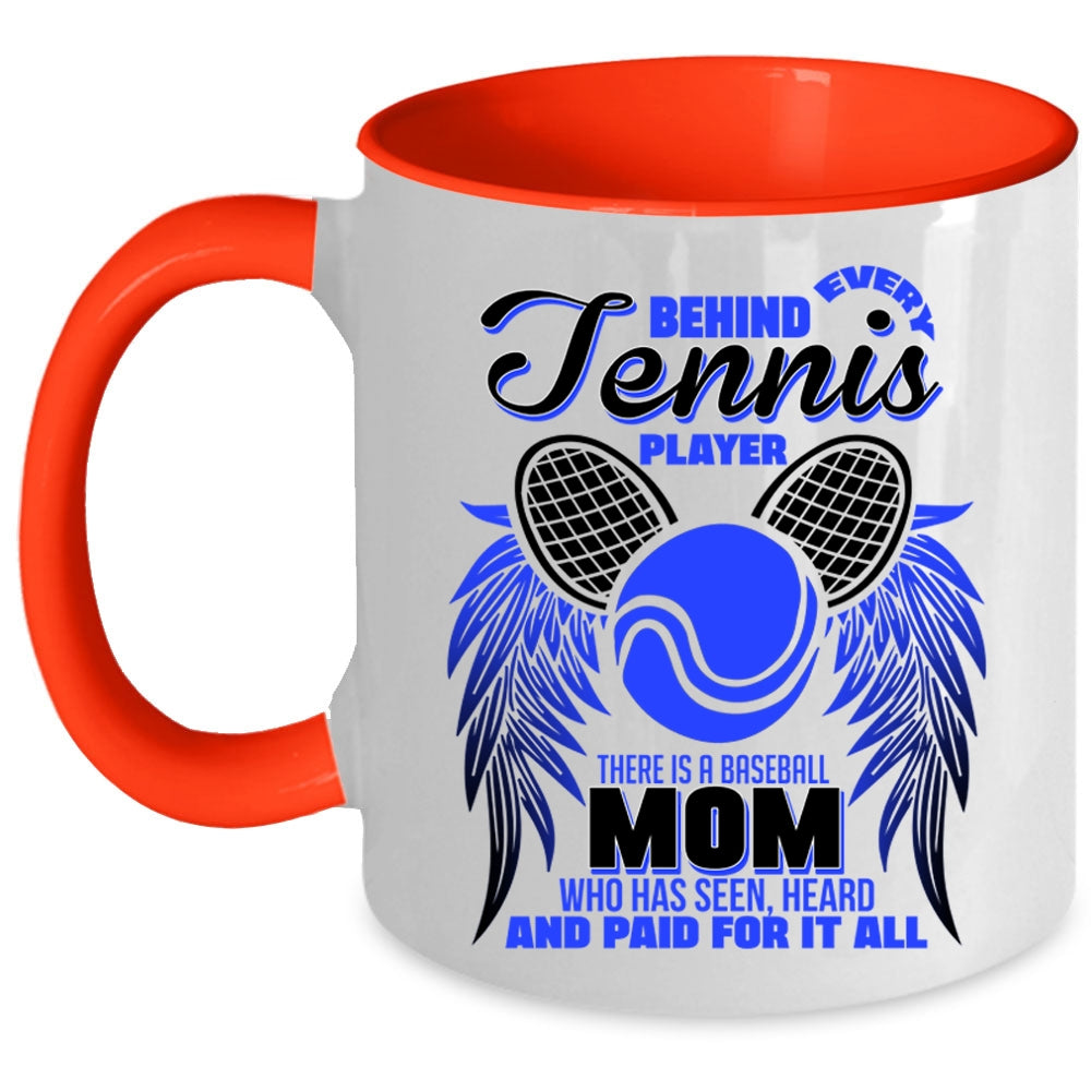 Baseball Mom Coffee Mug, Behind Every Tennis Player Accent Mug