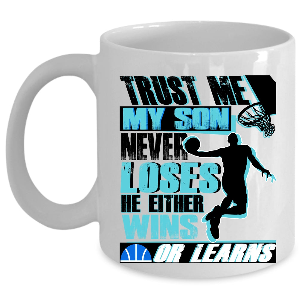 Basketball Coffee Mug, My Son Never Loses He Either Wins Or Learns Cup