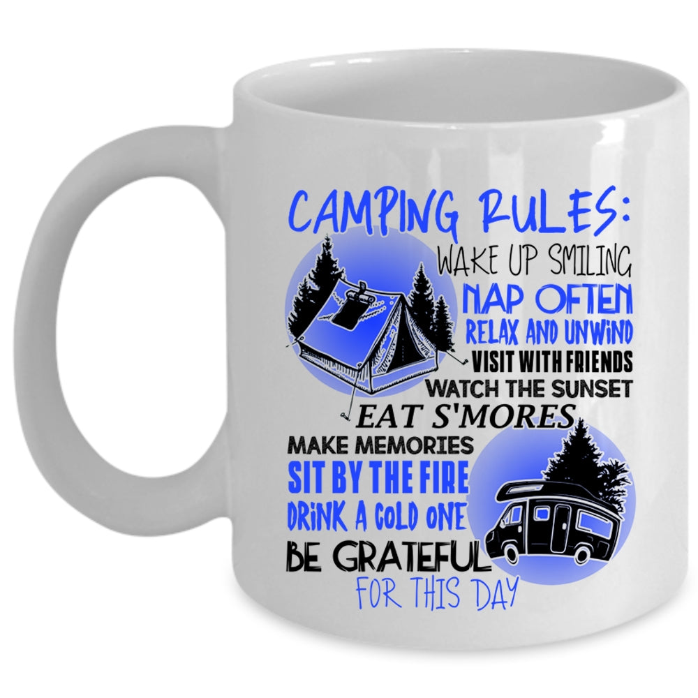 Be Gratful For This Day Coffee Mug, Camping Rules Cup