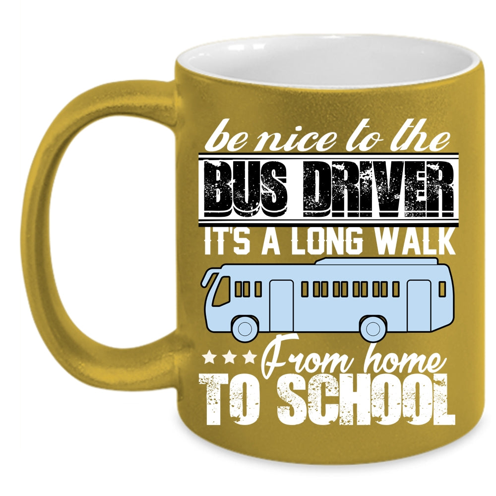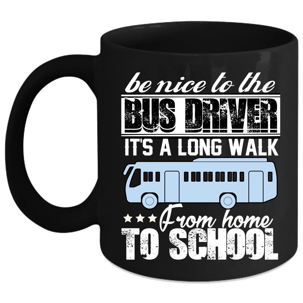 Be Nice To The Bus Driver Coffee Mug, It's A Long Walk From Home To School Coffee Cup