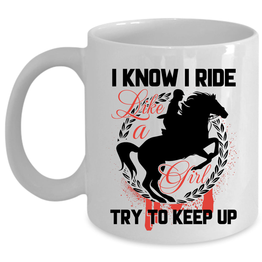 Beautiful Girls Coffee Mug, I Know I Ride Like A Girl Cup