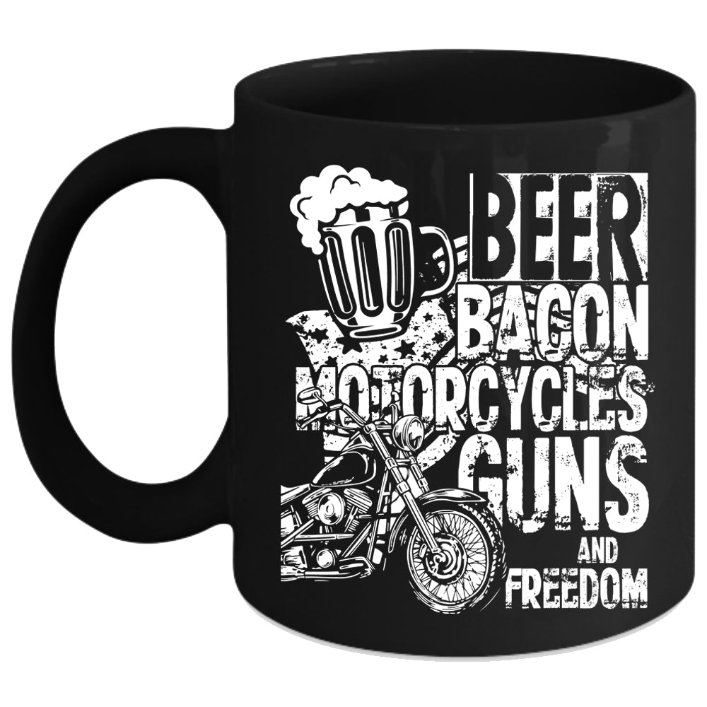 Beer Bacon Motorcycles And Freedom Coffee Mug, Funny Motorcycles Coffee Cup