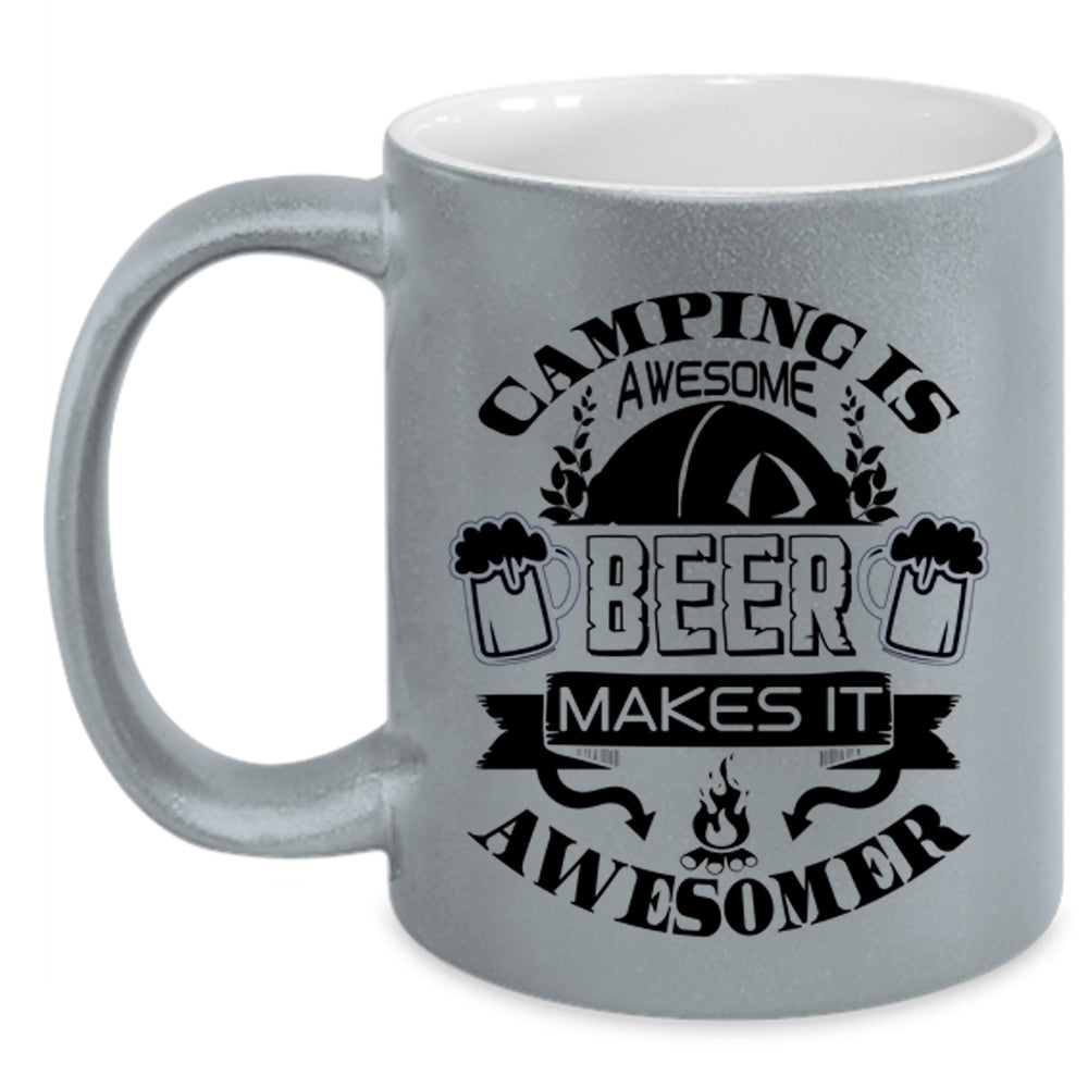 Beer Makes It Awesomer Coffee Mug, Camping Is Awesome Accent Mug