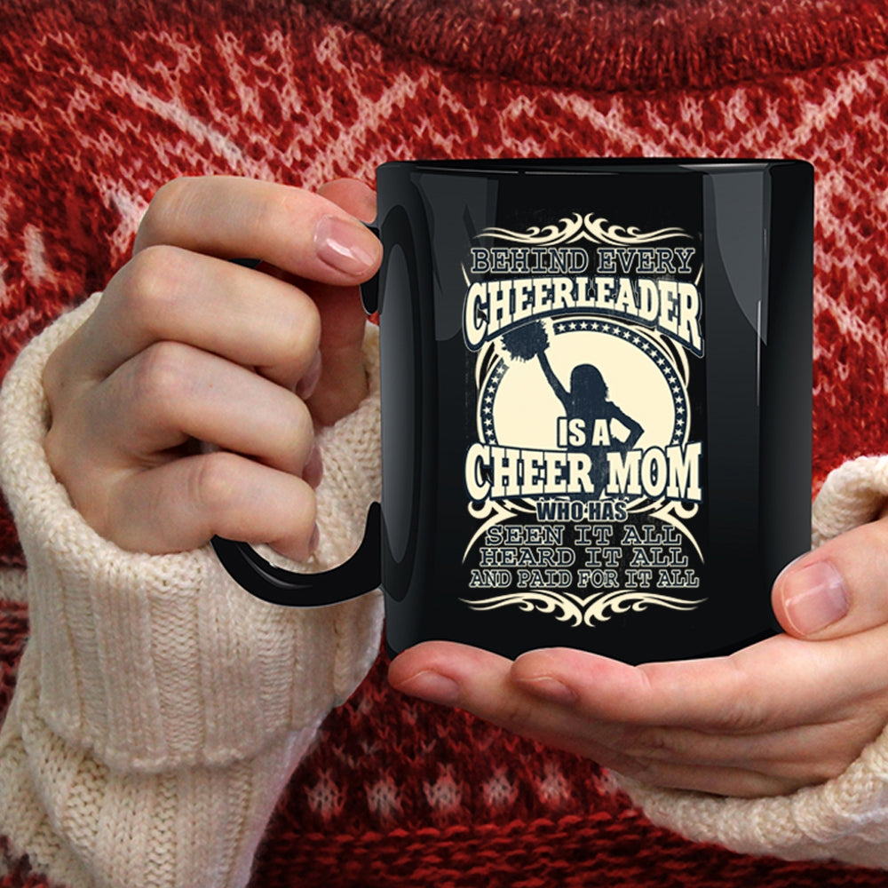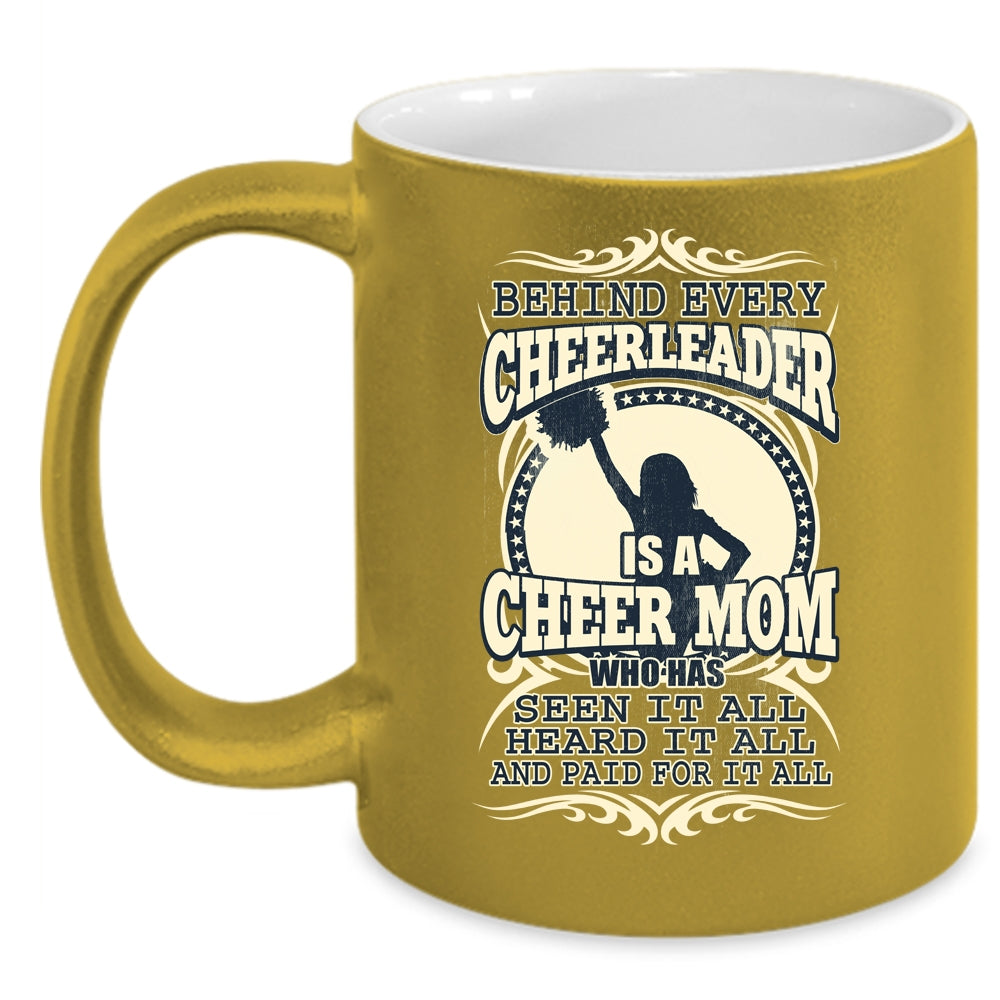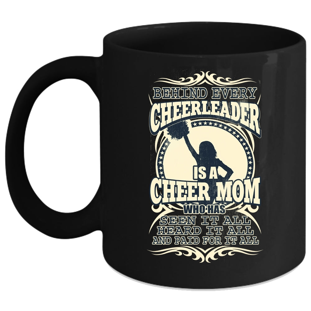 Behind Every Cheerleader Is A Cheer Mom Coffee Mug, Funny Mama Coffee Cup