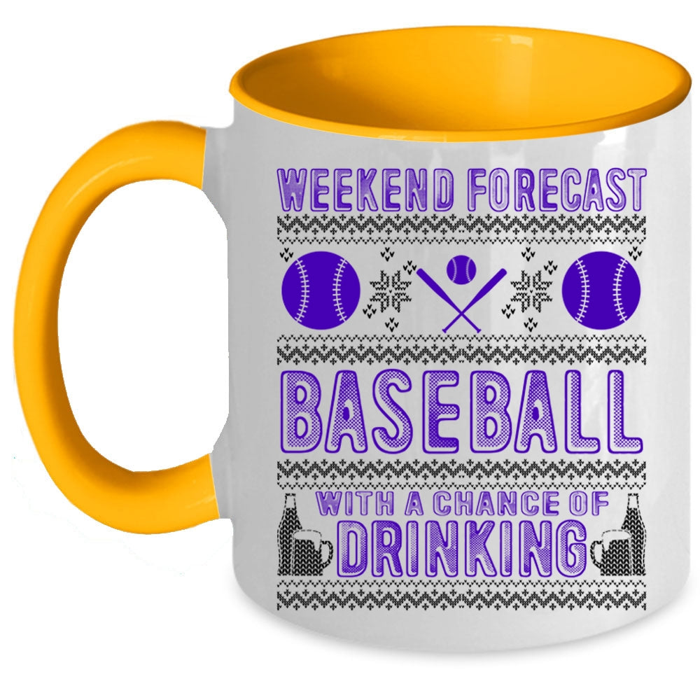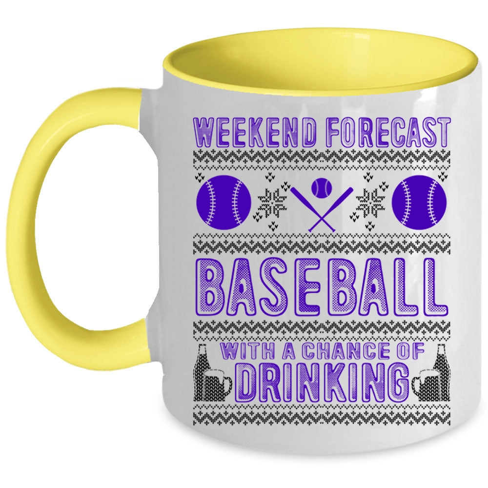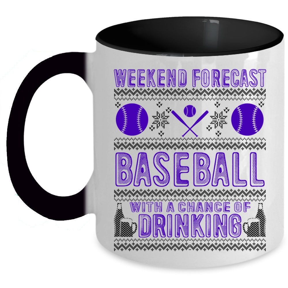 Chance Of Drinking Coffee Mug, Weekend Forecast Baseball Accent Mug