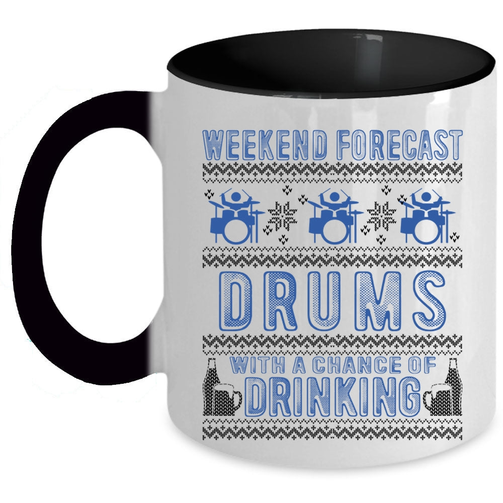 Chance Of Drinking Coffee Mug, Weekend Forecast Drums Accent Mug