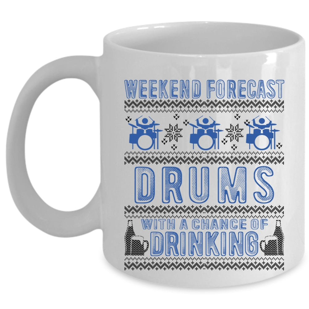 Chance Of Drinking Coffee Mug, Weekend Forecast Drums Cup