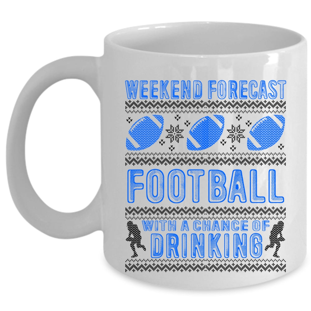 Chance Of Drinking Coffee Mug, Weekend Forecast Football Cup