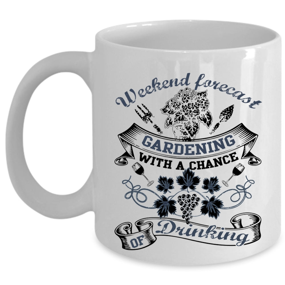 Chance Of Drinking Coffee Mug, Weekend Forecast Gardening Cup