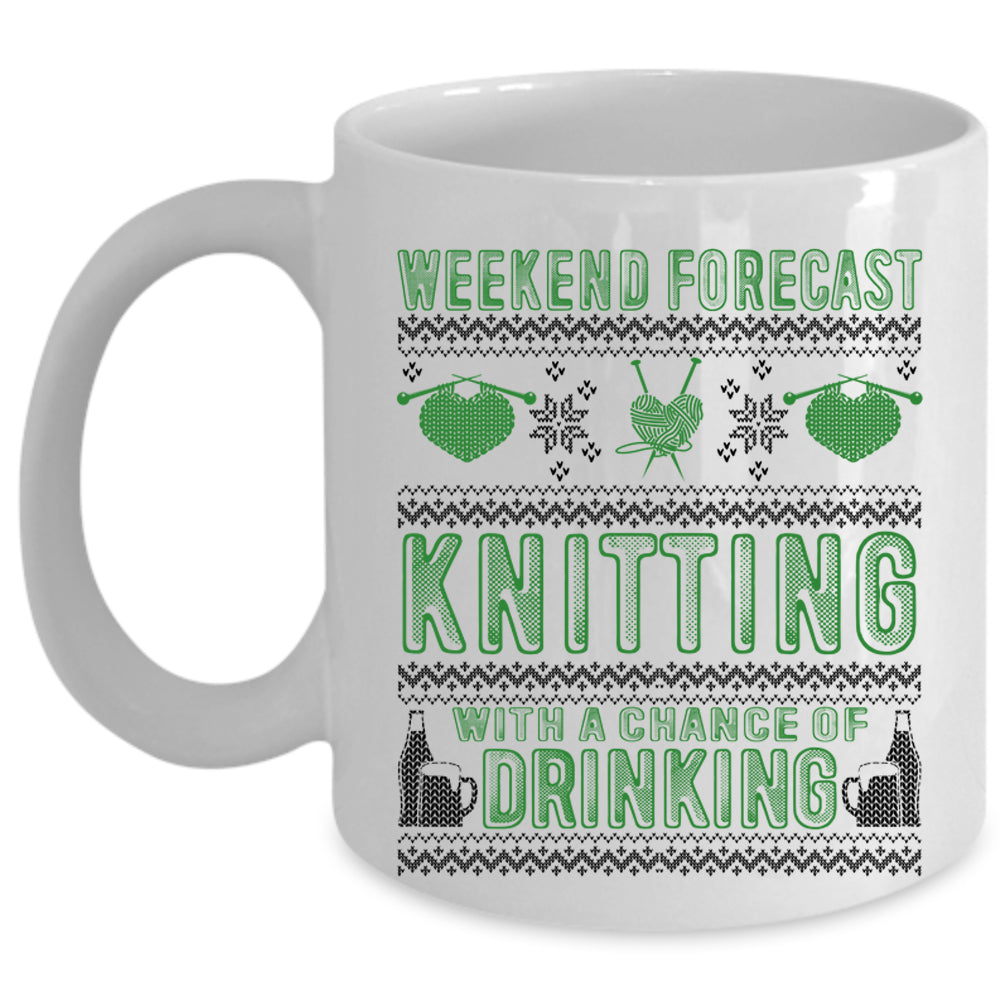 Chance Of Drinking Coffee Mug, Weekend Forecast Knitting Cup