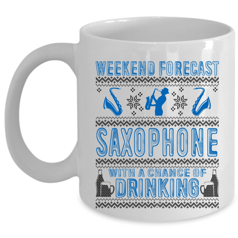 Chance Of Drinking Coffee Mug, Weekend Forecast Saxophone Cup