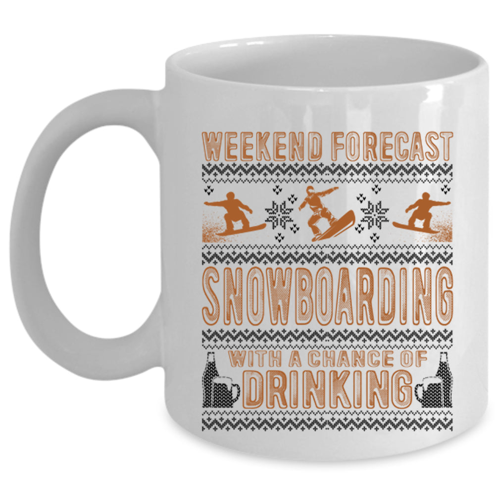 Chance Of Drinking Coffee Mug, Weekend Forecast Snowboarding Cup