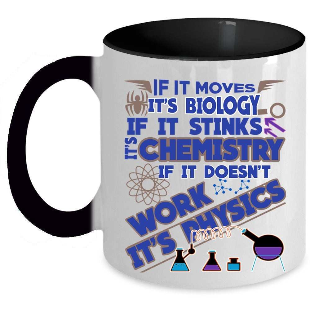 Chemistry And Physics Coffee Mug, If It Moves It's Biology Accent Mug
