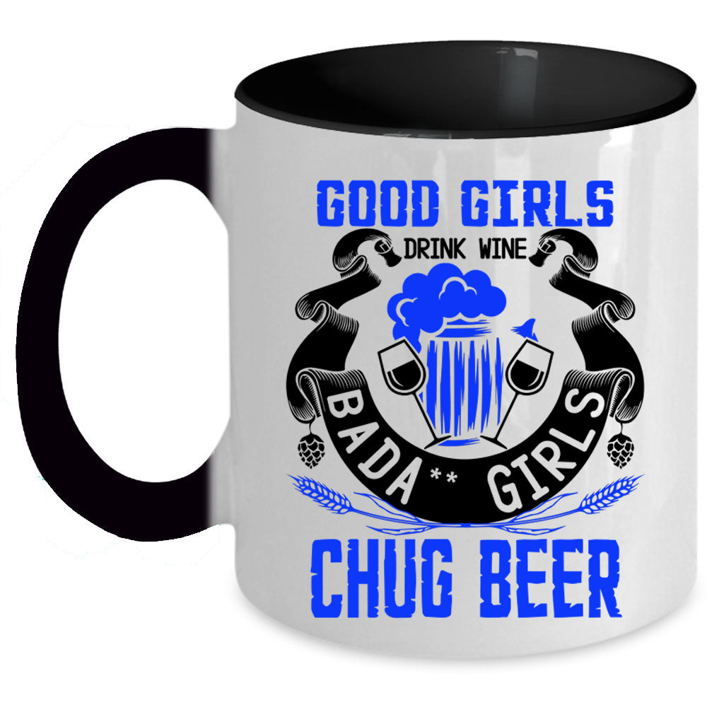 Chug Beer Coffee Mug, Good Girls Drink Wine Accent Mug