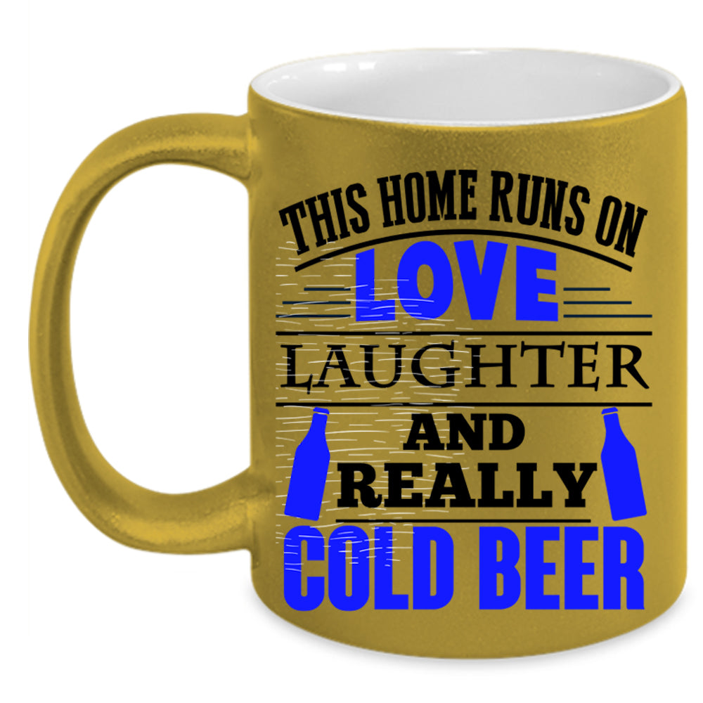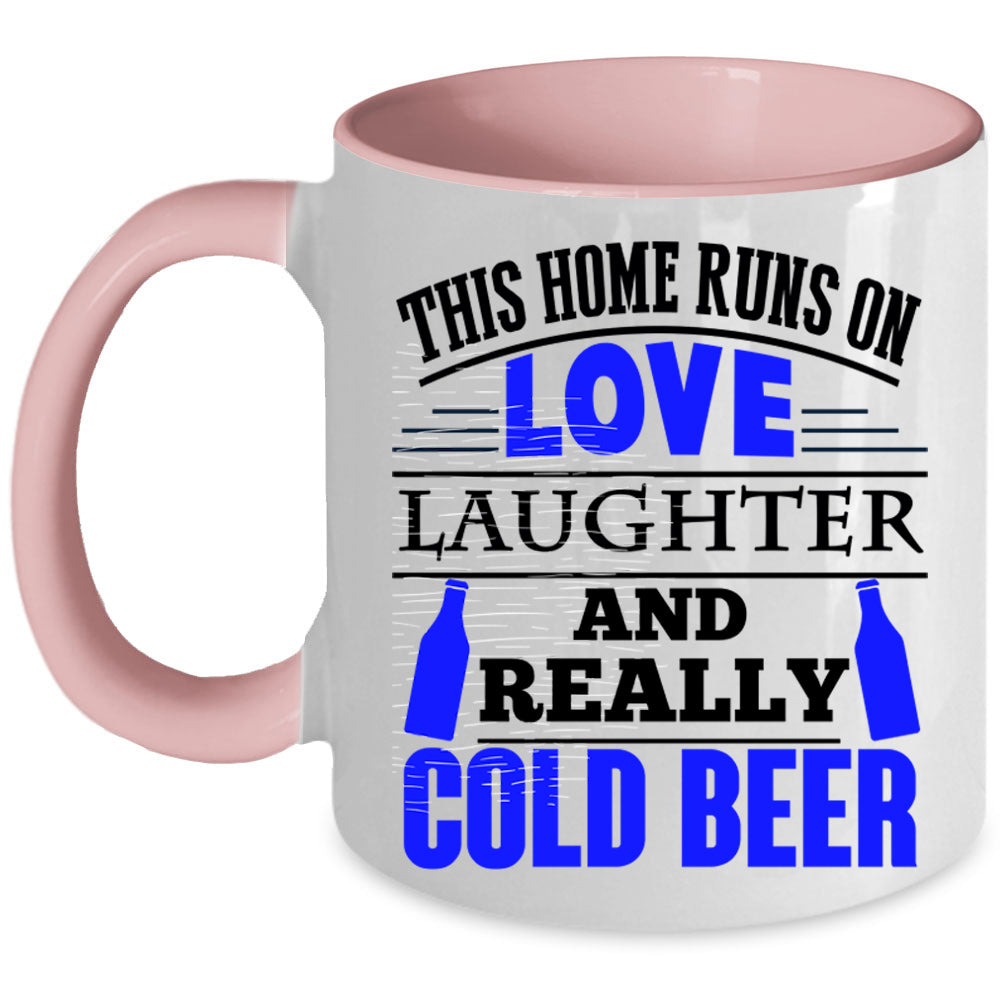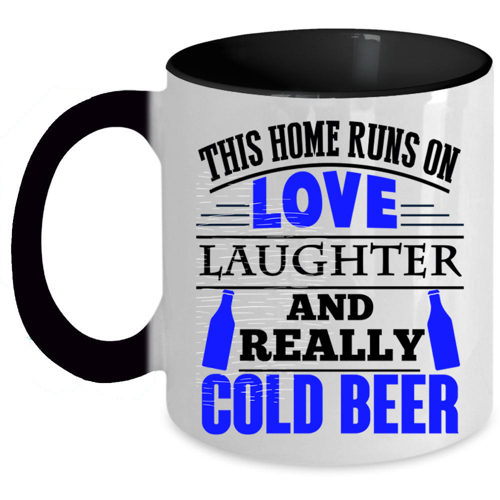 Cold Beer Coffee Mug, This Home Runs On Love Laughter Accent Mug
