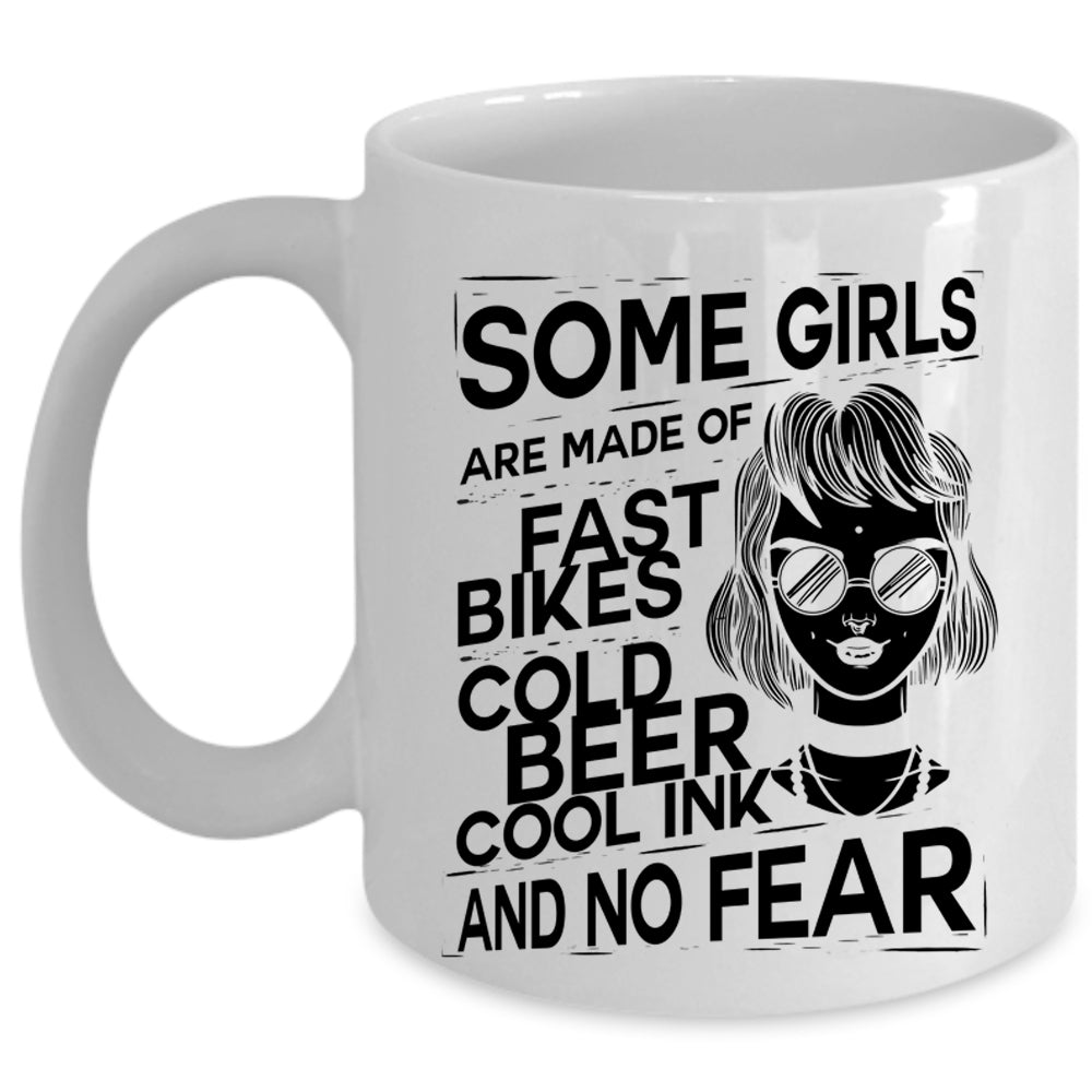 Cold Beer Cool Ink And No Fear Coffee Mug, Some Girls Are Made Of Fast Bikes Cup