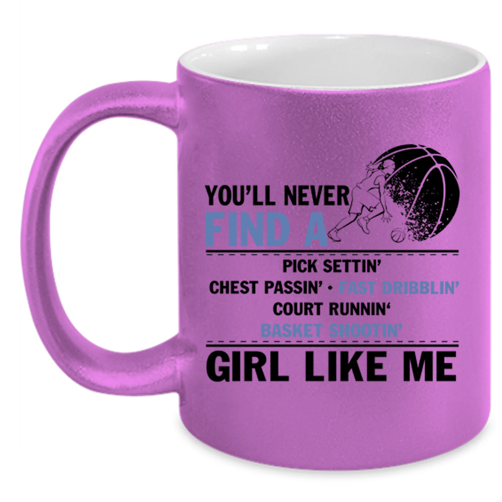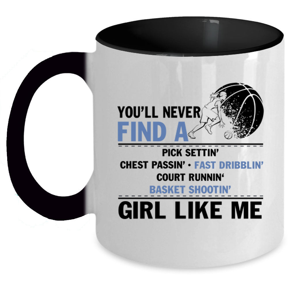 Cool Basketball Coffee Mug, You'll Never Find A Girl Like Me Accent Mug