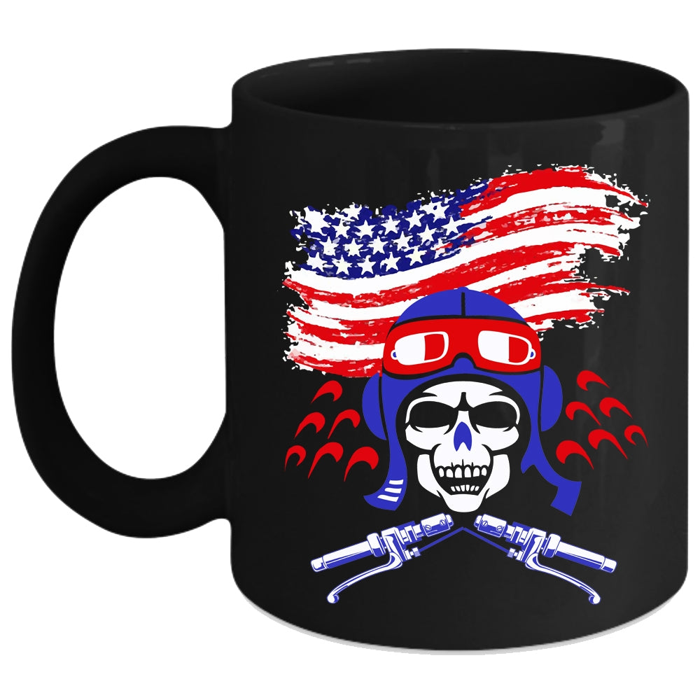 Cool Biker Coffee Mug, American Flag Coffee Cup