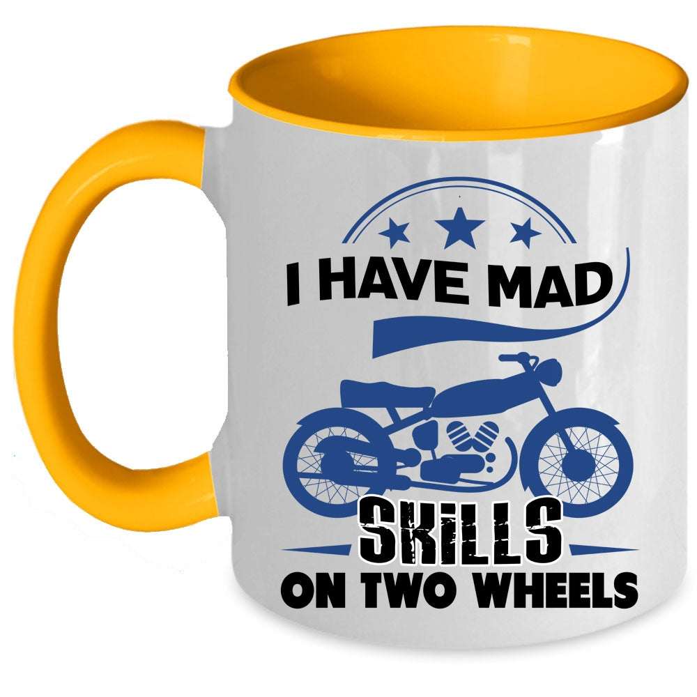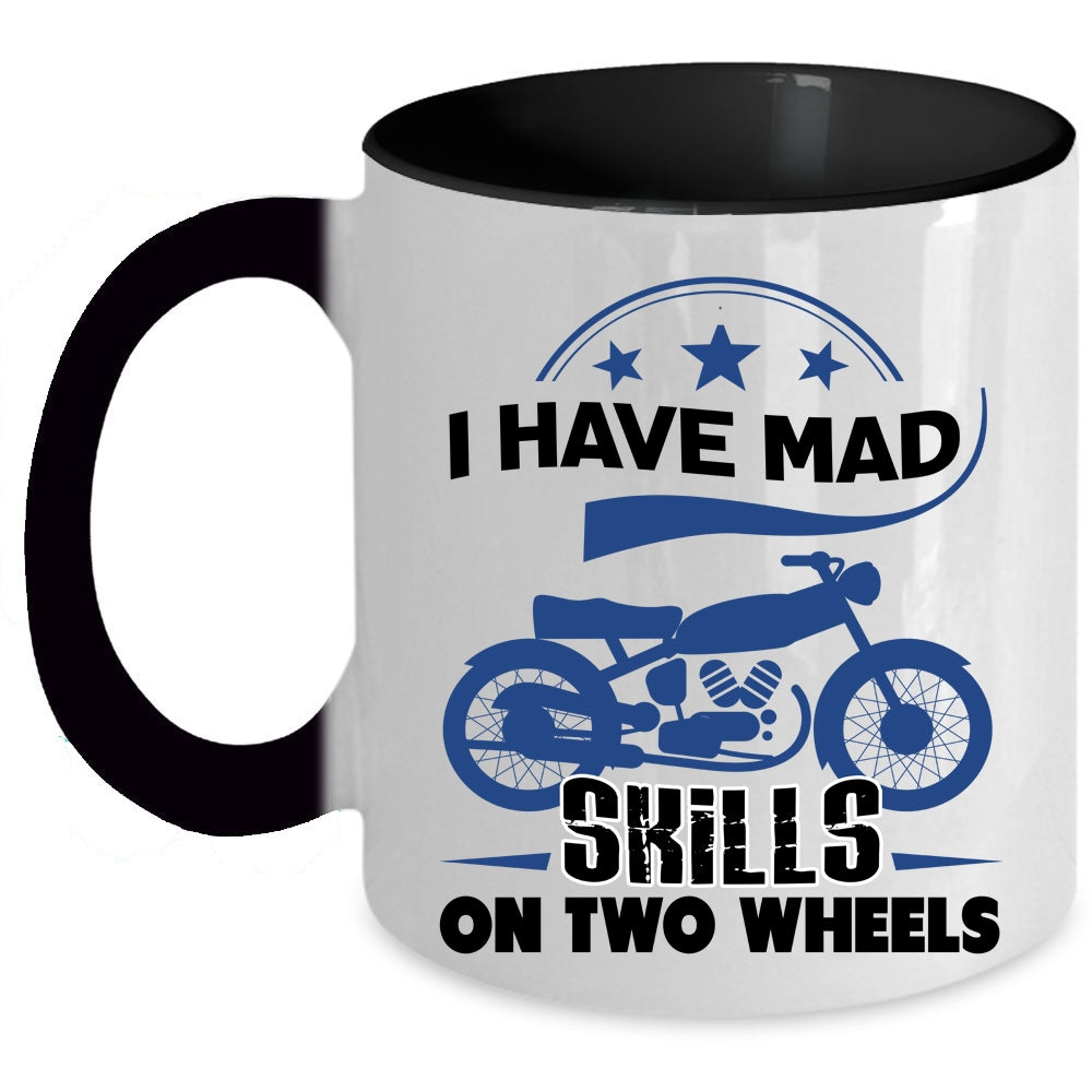 Cool Biker Coffee Mug, I Have Mad Skills On Two Wheels Accent Mug