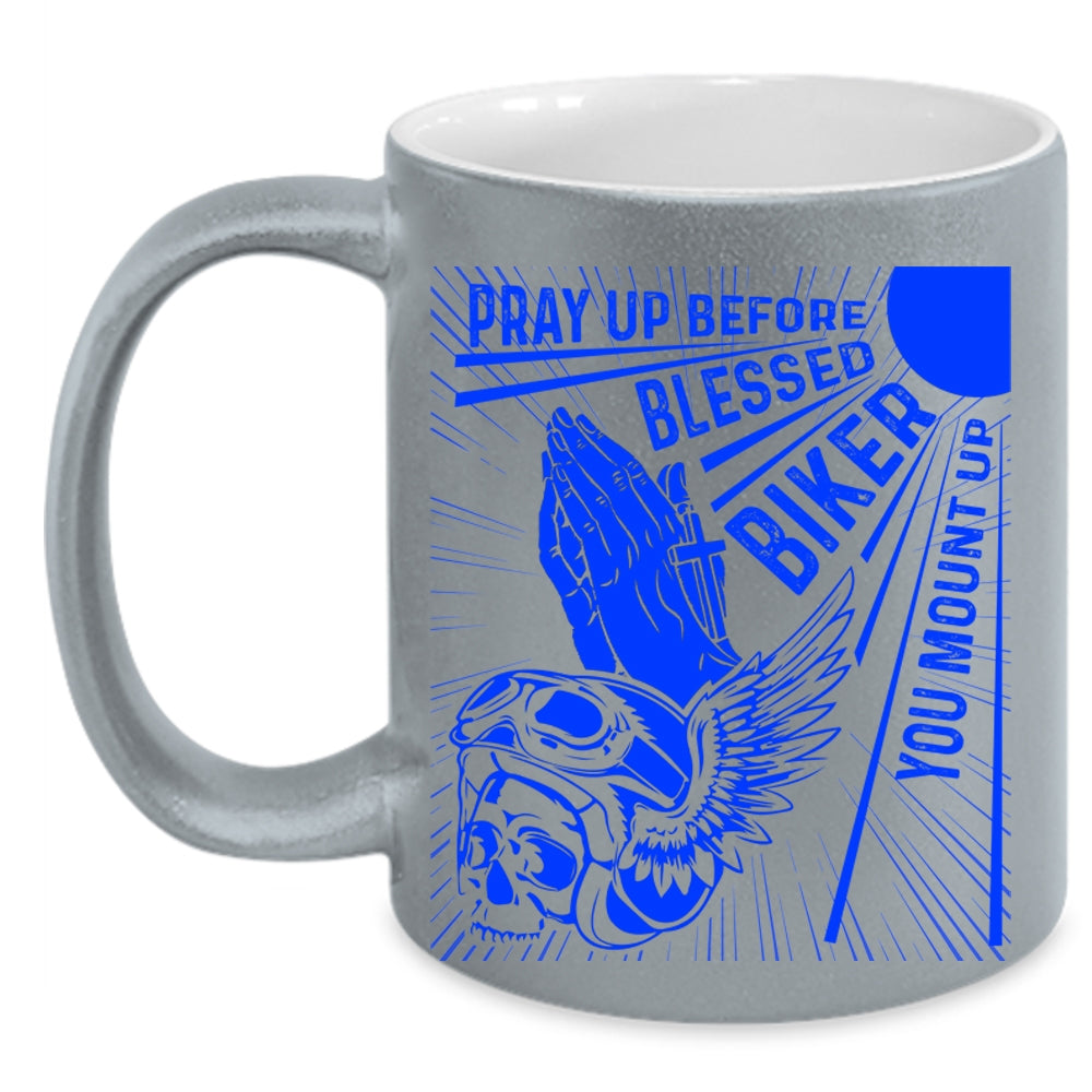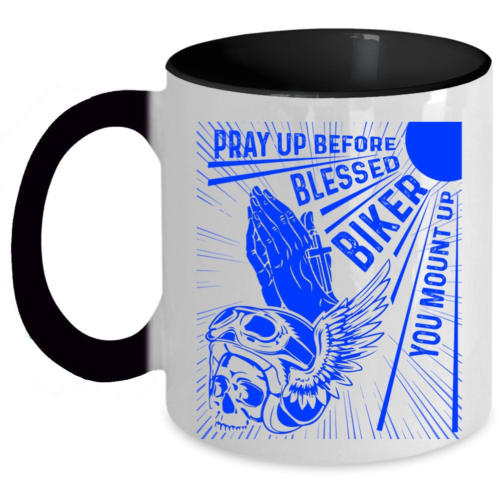 Cool Biker Coffee Mug, Pray Up Before Blessed Biker Accent Mug