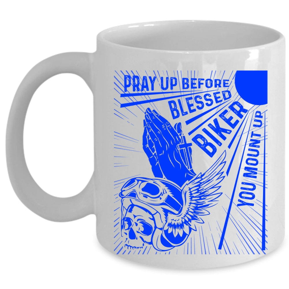 Cool Biker Coffee Mug, Pray Up Before Blessed Biker Cup