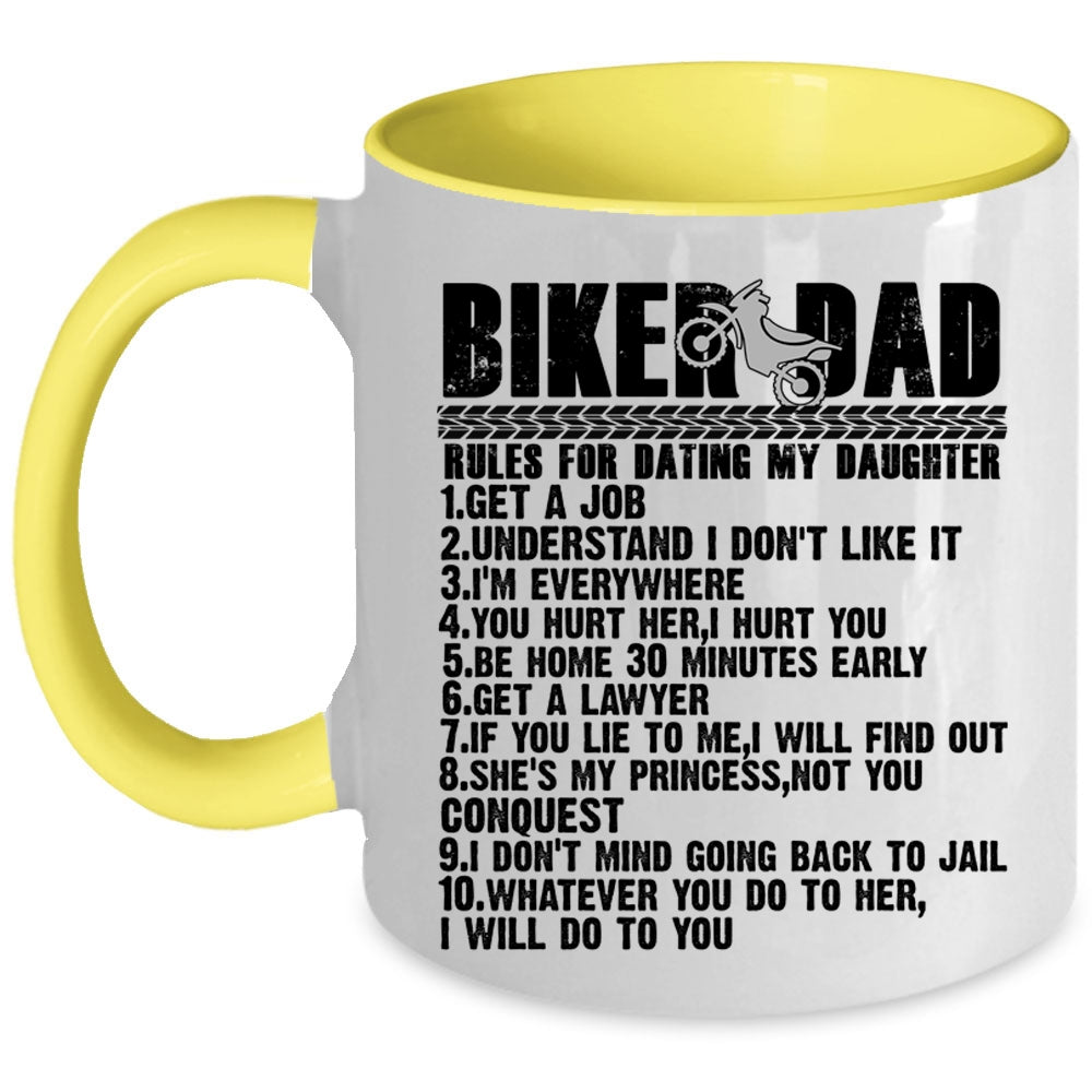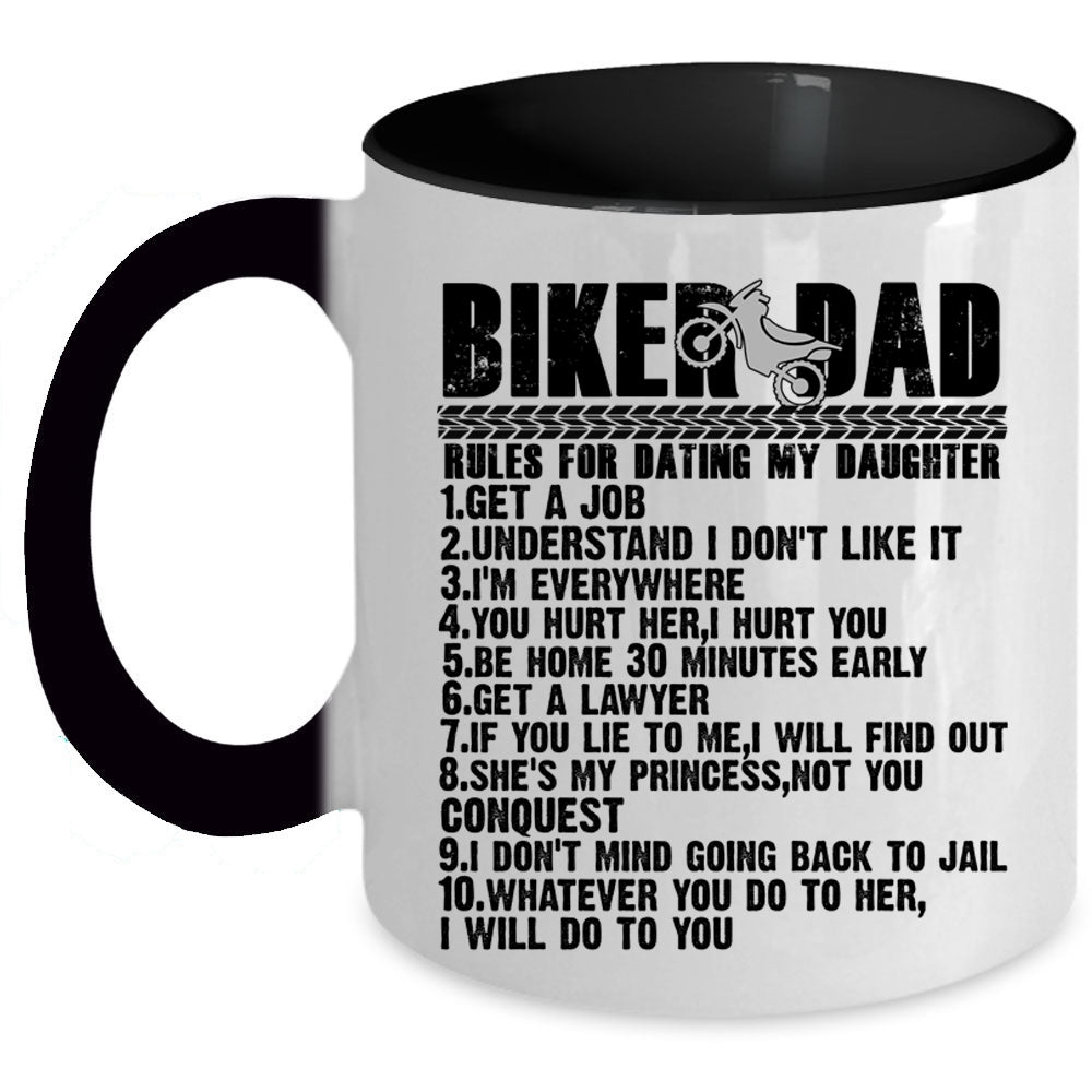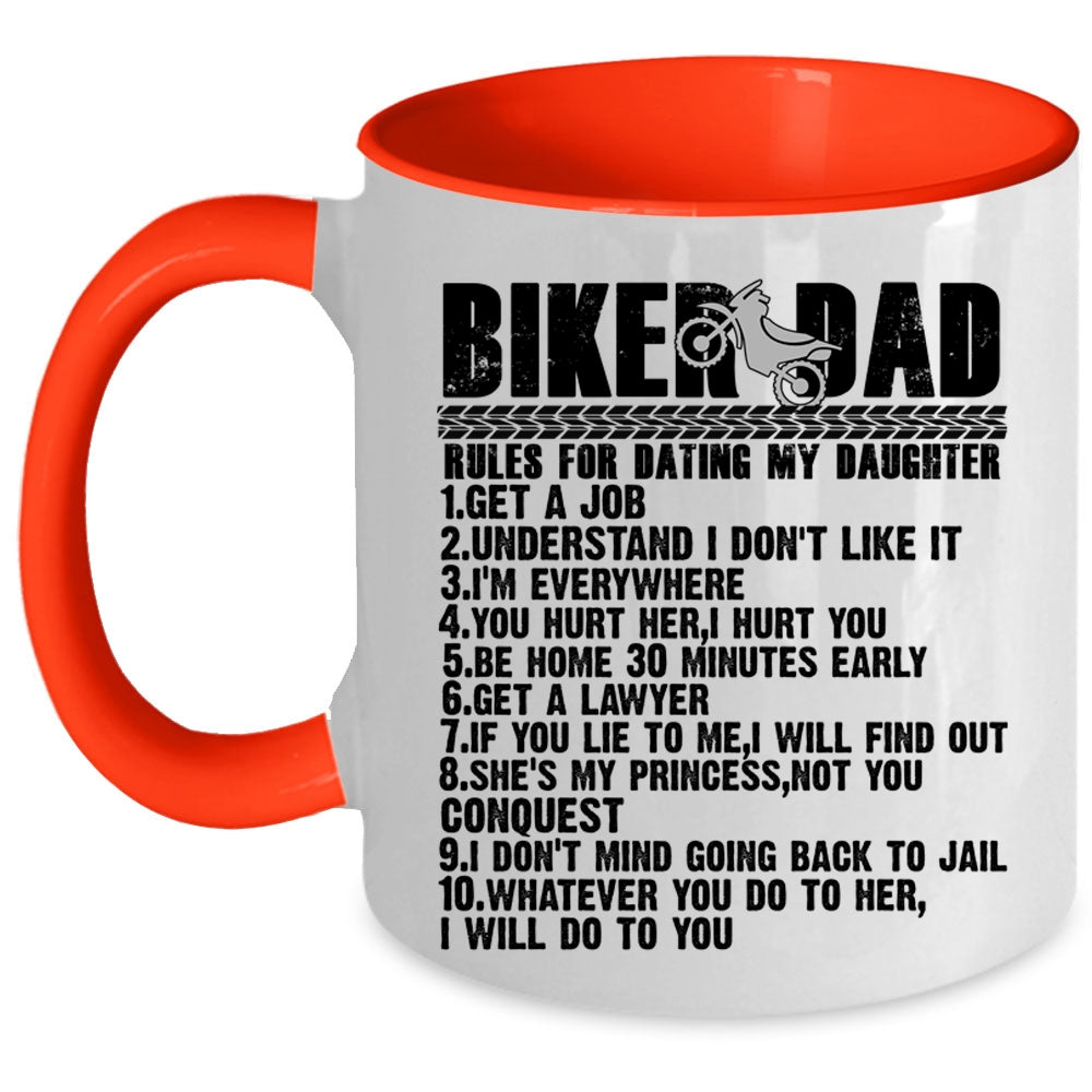 Cool Biker Dad Coffee Mug, Biker Dad Rules For Dating My Daughter Accent Mug