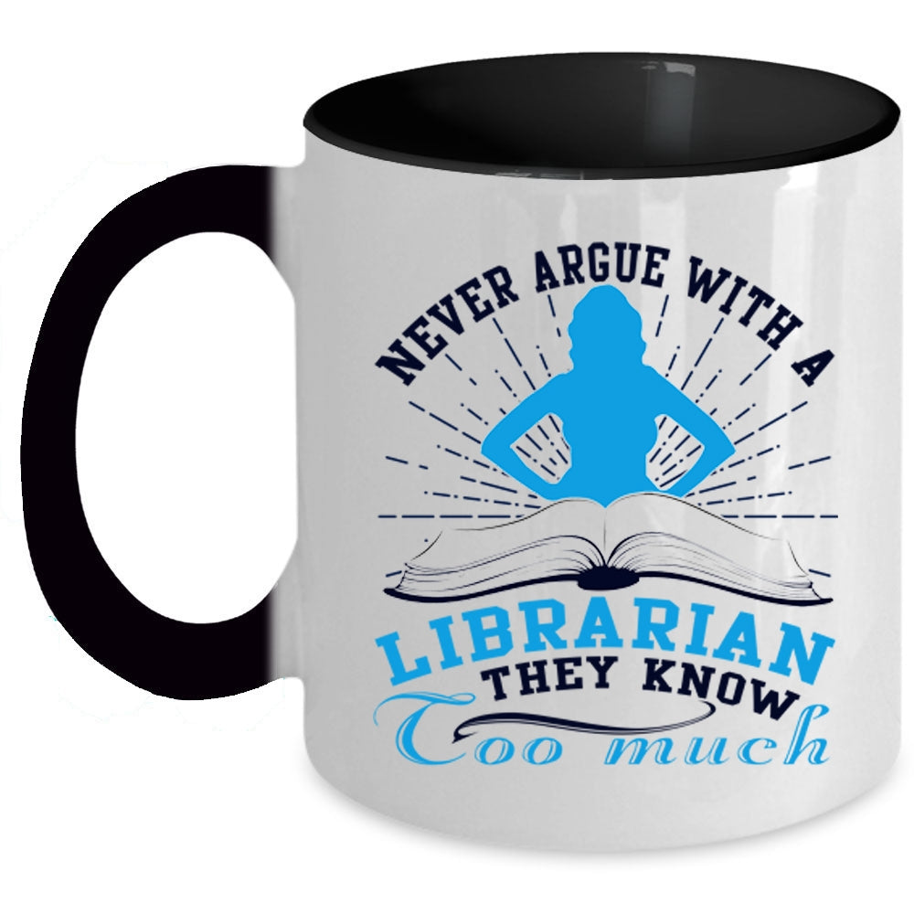 Cool Books Coffee Mug, Never Argue With A Librarian Accent Mug