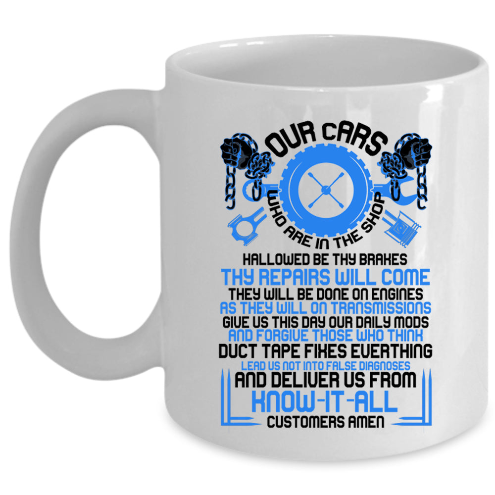Cool Car Mechanics Coffee Mug, Our Cars Who Are In The Shop Cup