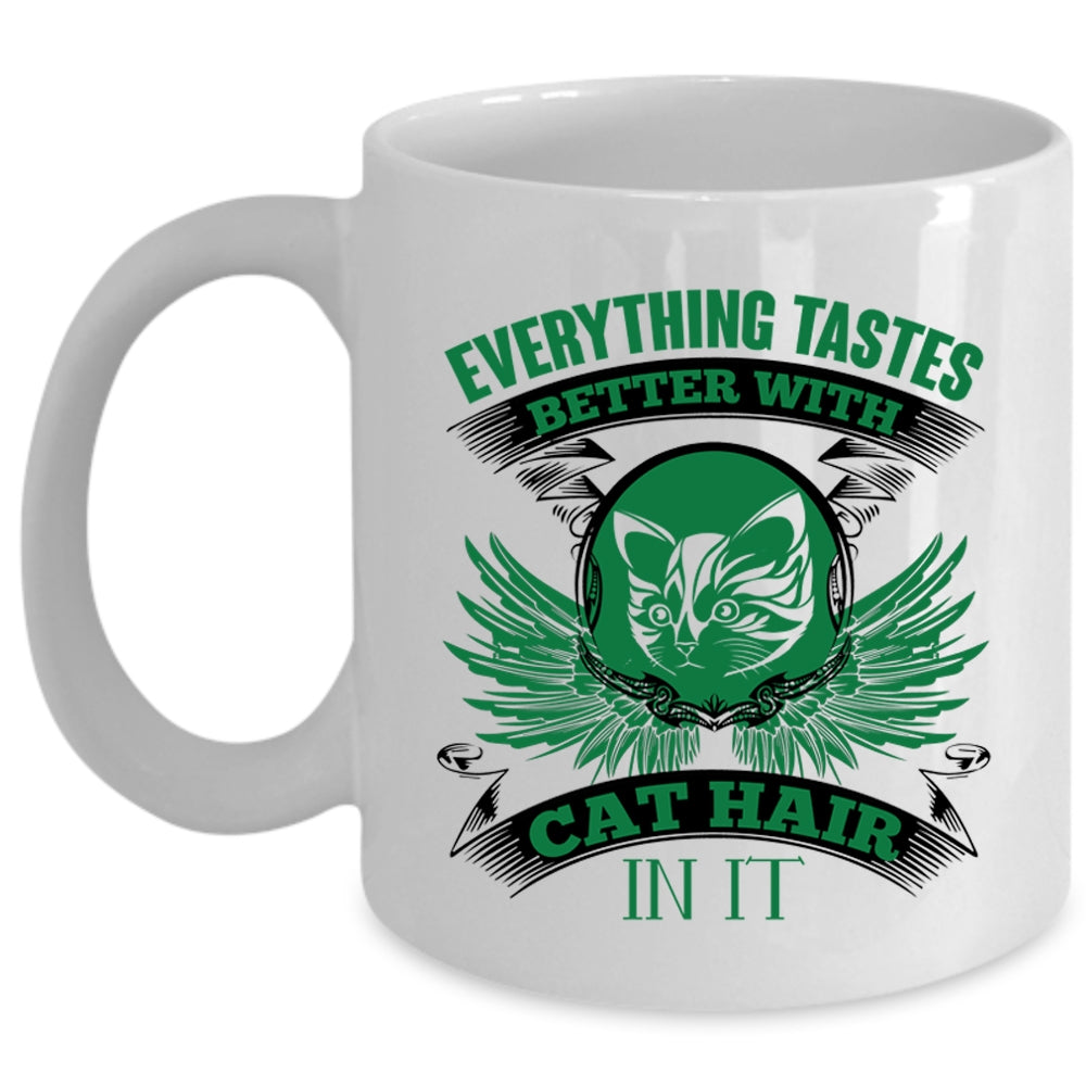 Cool Cat Coffee Mug, Everything Tastes Better With Cat Hair Cup
