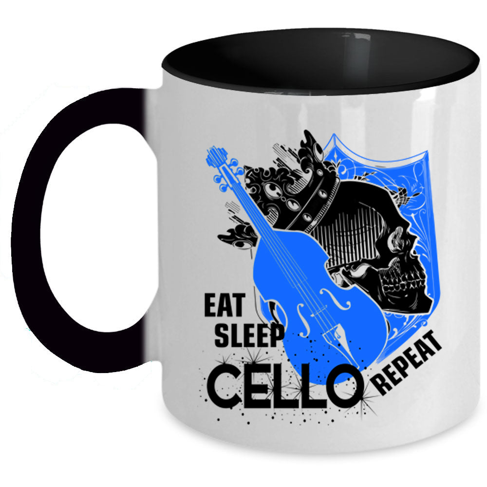 Cool Cello Player Coffee Mug, Eat Sleep Cello Repeat Accent Mug