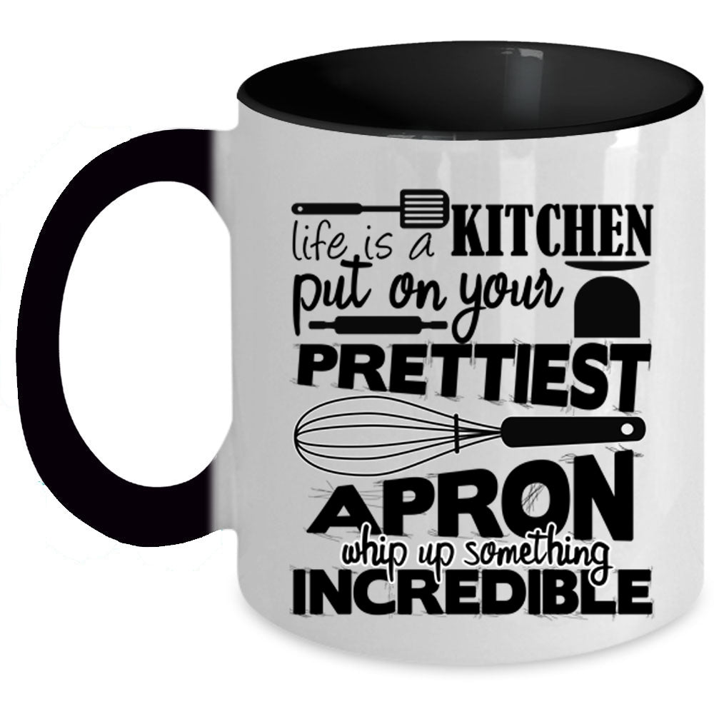Cool Chef Coffee Mug, Life Is A Kitchen Put On Prettiest Apron Accent Mug