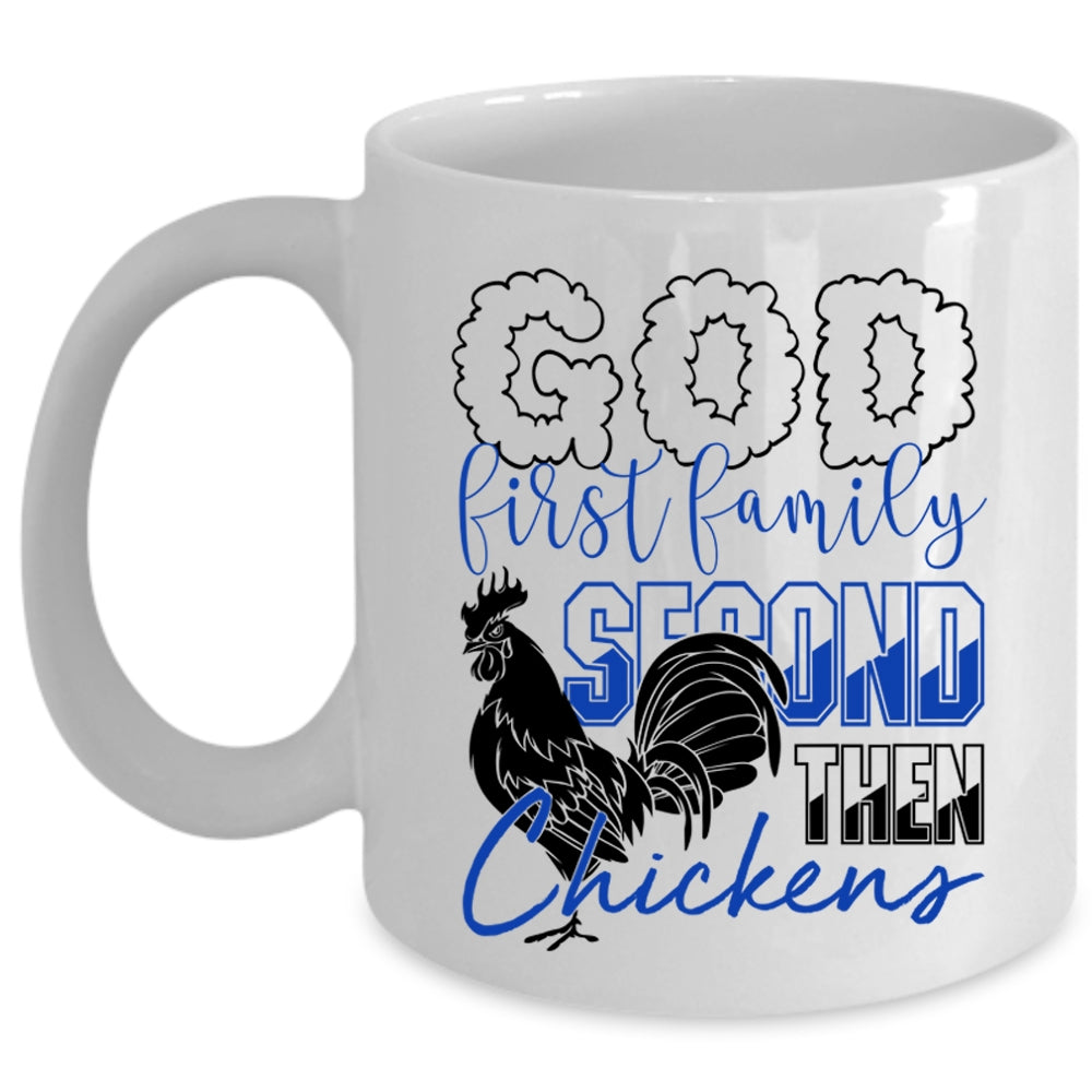 Cool Chickens Coffee Mug, God First Family Second The Chickens Cup