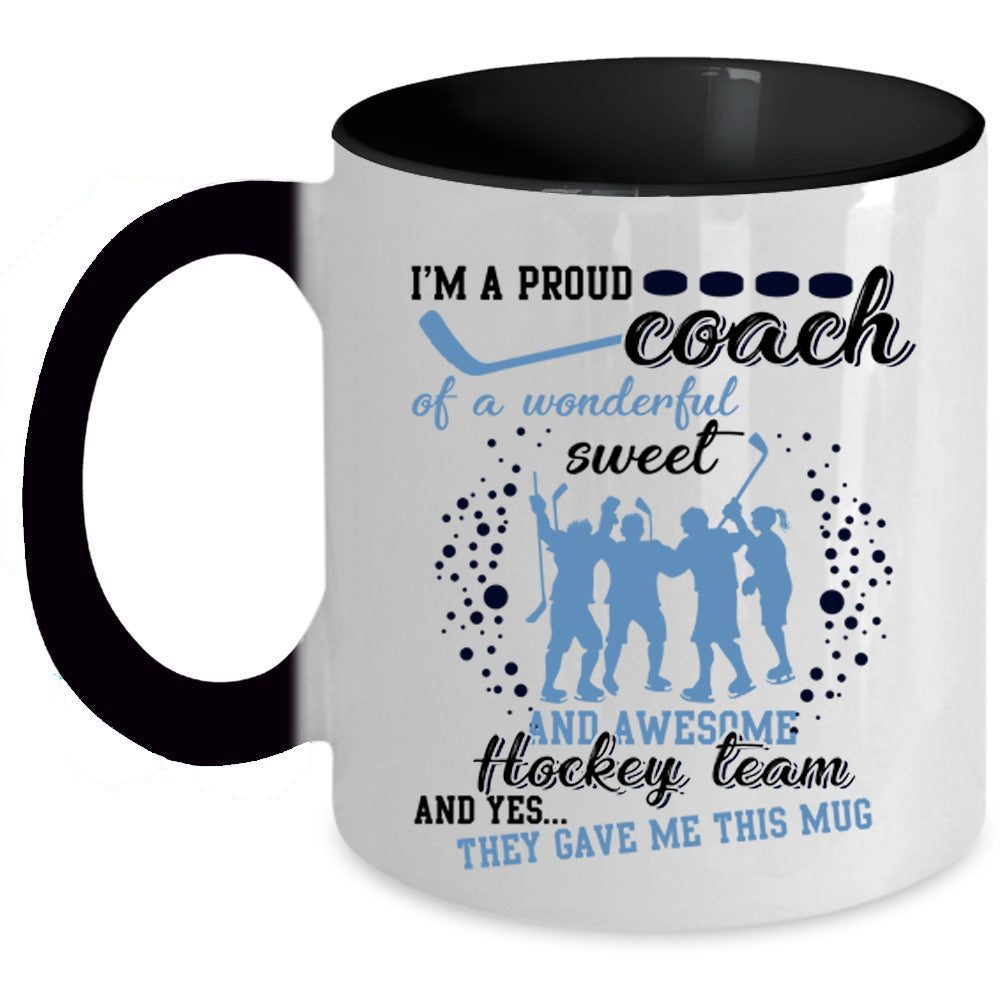 Cool Coach Coffee Mug, I'm A Proud Coach Of A Aweet Hockey Team Accent Mug