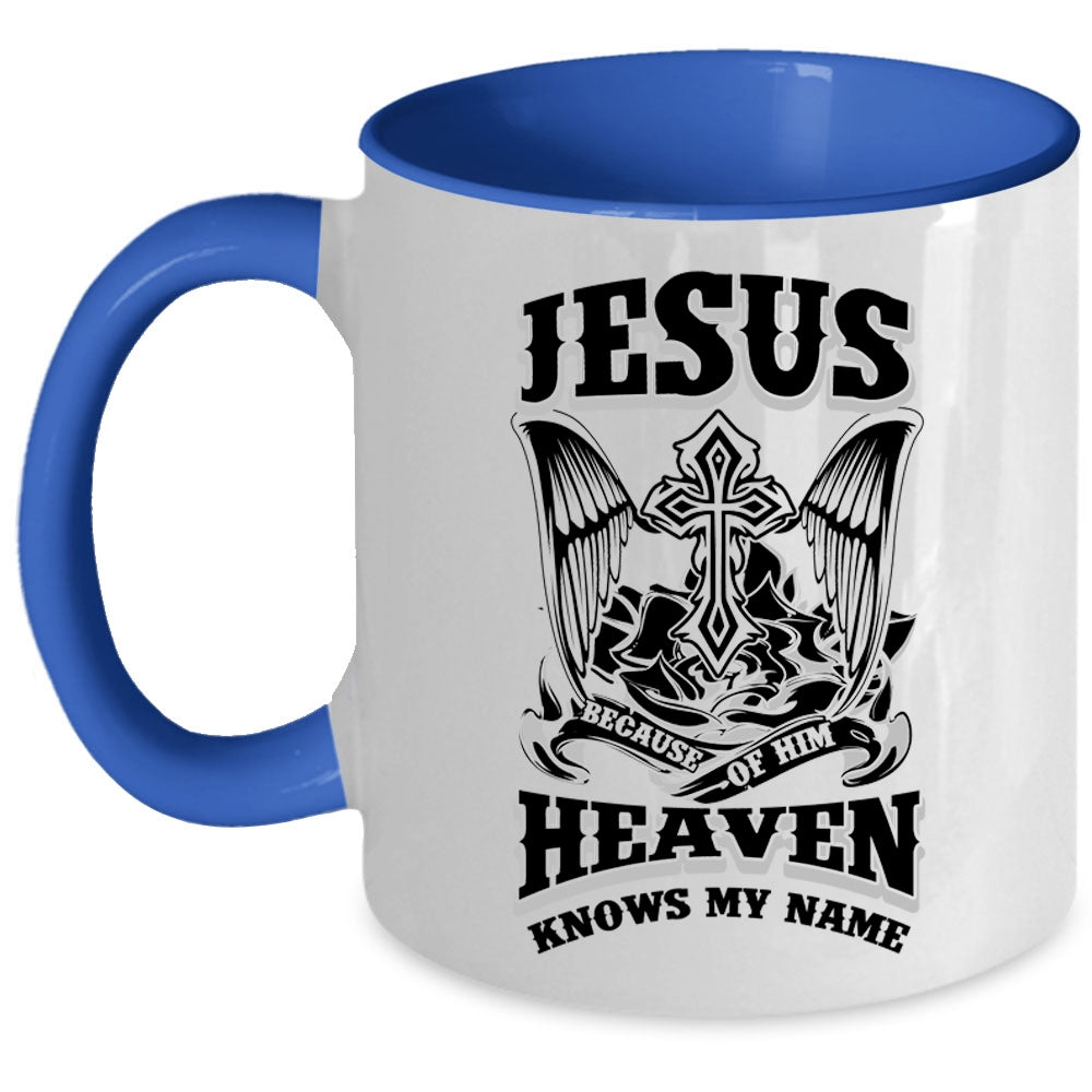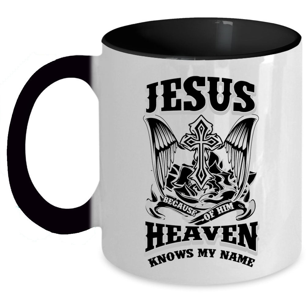 Cool Coffee Mug, Because Of Him Heaven Knows My Name Accent Mug