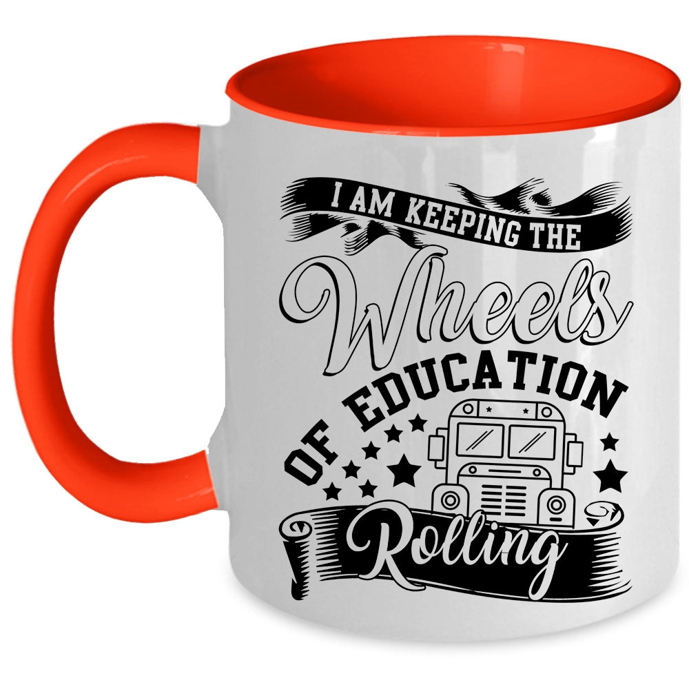 Cool Coffee Mug, I Am Keeping The Wheels Of Education Rolling Accent Mug