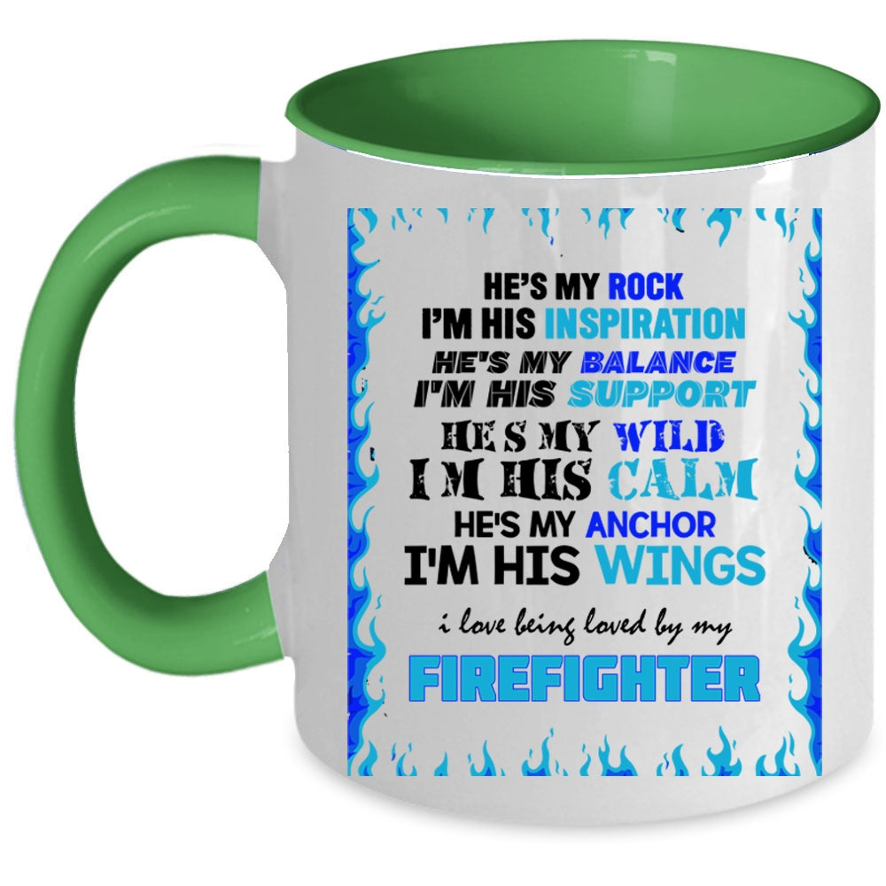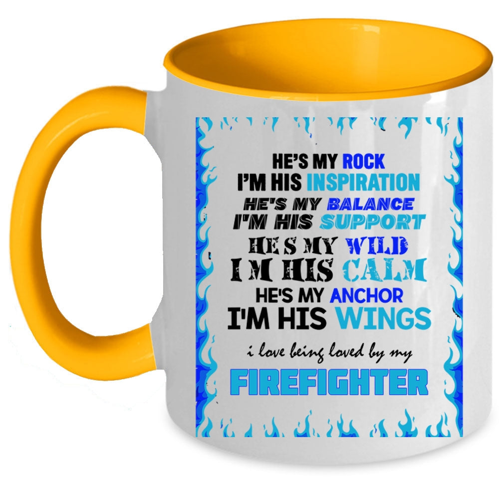 Cool Coffee Mug, I Love Being Loved By My Firefighter Accent Mug