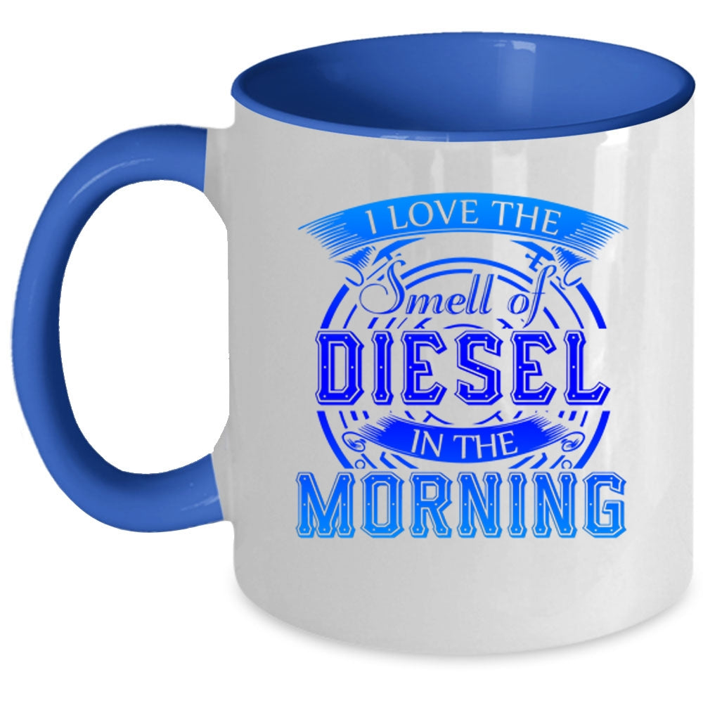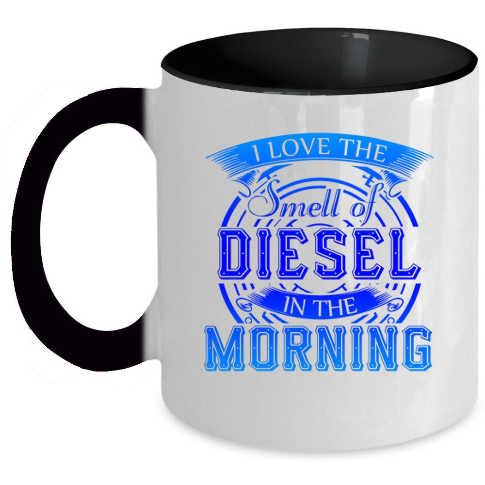 Cool Coffee Mug, I Love The Smell Of Diesel In The Morning Accent Mug