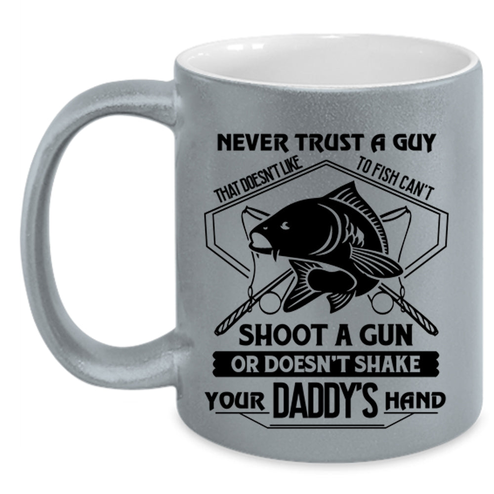 Cool Coffee Mug, Never Trust A Guy That Doesn't Like To Fish Accent Mug
