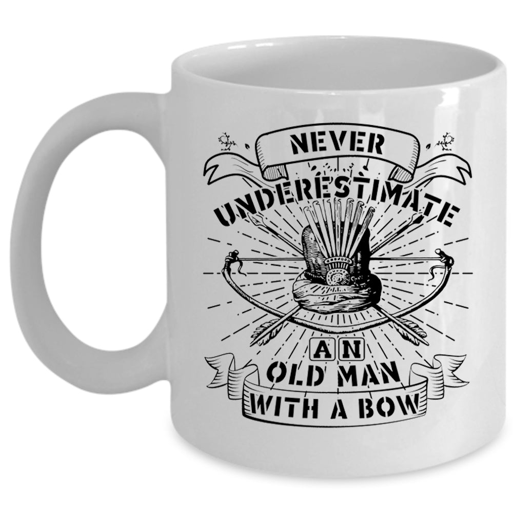 Cool Coffee Mug, Never Underestimate An Old Man With A Bow Cup