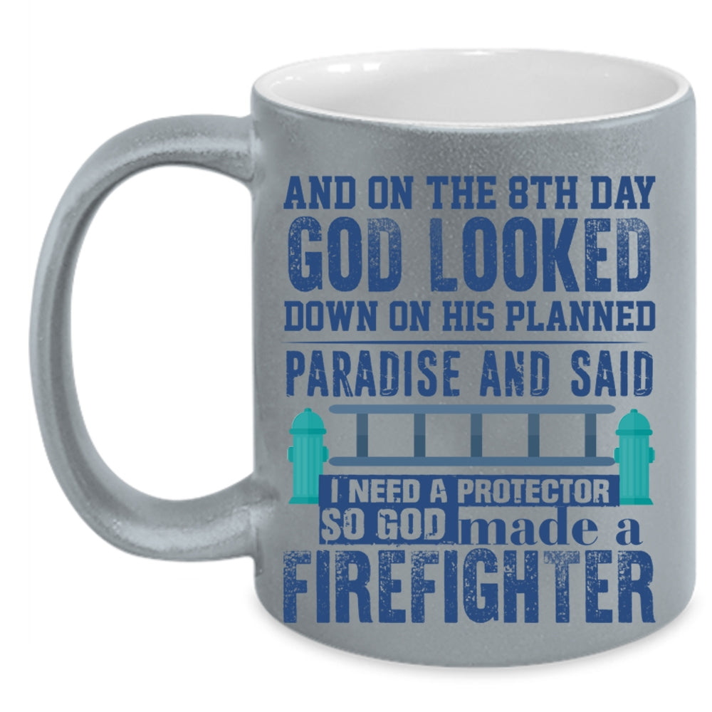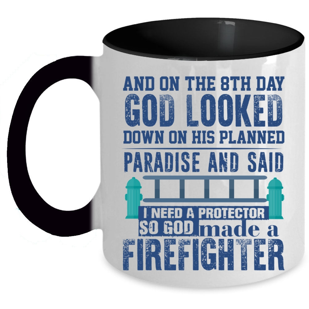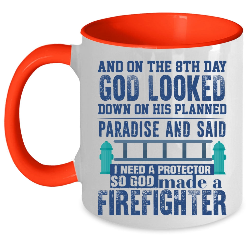 Cool Coffee Mug, On The 8th Day God Made A Firefighter Accent Mug