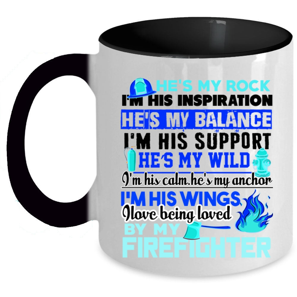 Cool Couple Coffee Mug, I Love Being Loved By My Firefighter Accent Mug
