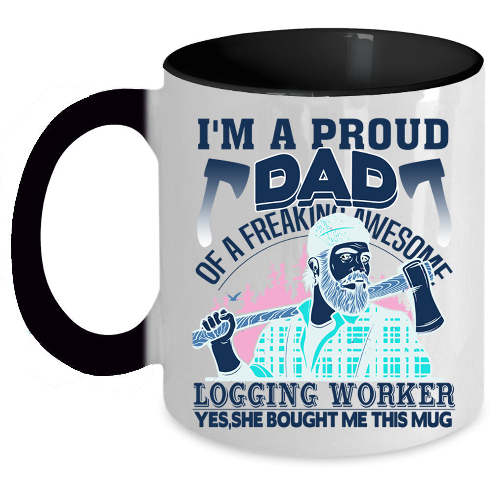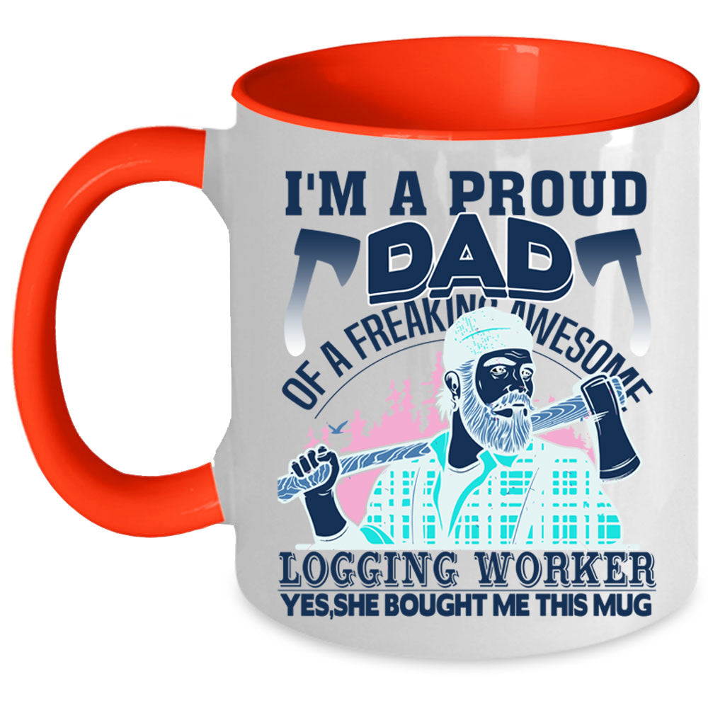 Cool Dad Coffee Mug, I'm A Proud Dad Of A Logging Worker Accent Mug