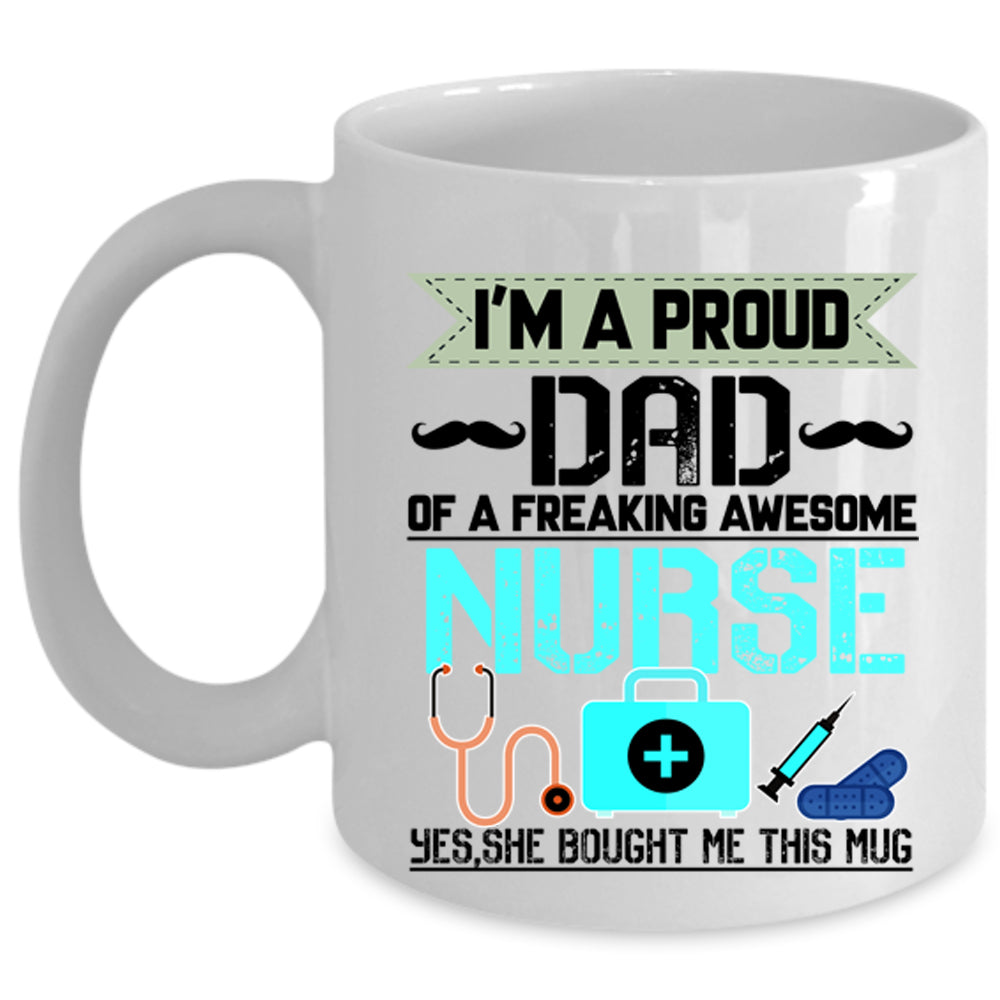 Cool Dad Coffee Mug, I'm A Proud Dad Of An Awesome Nurse Cup