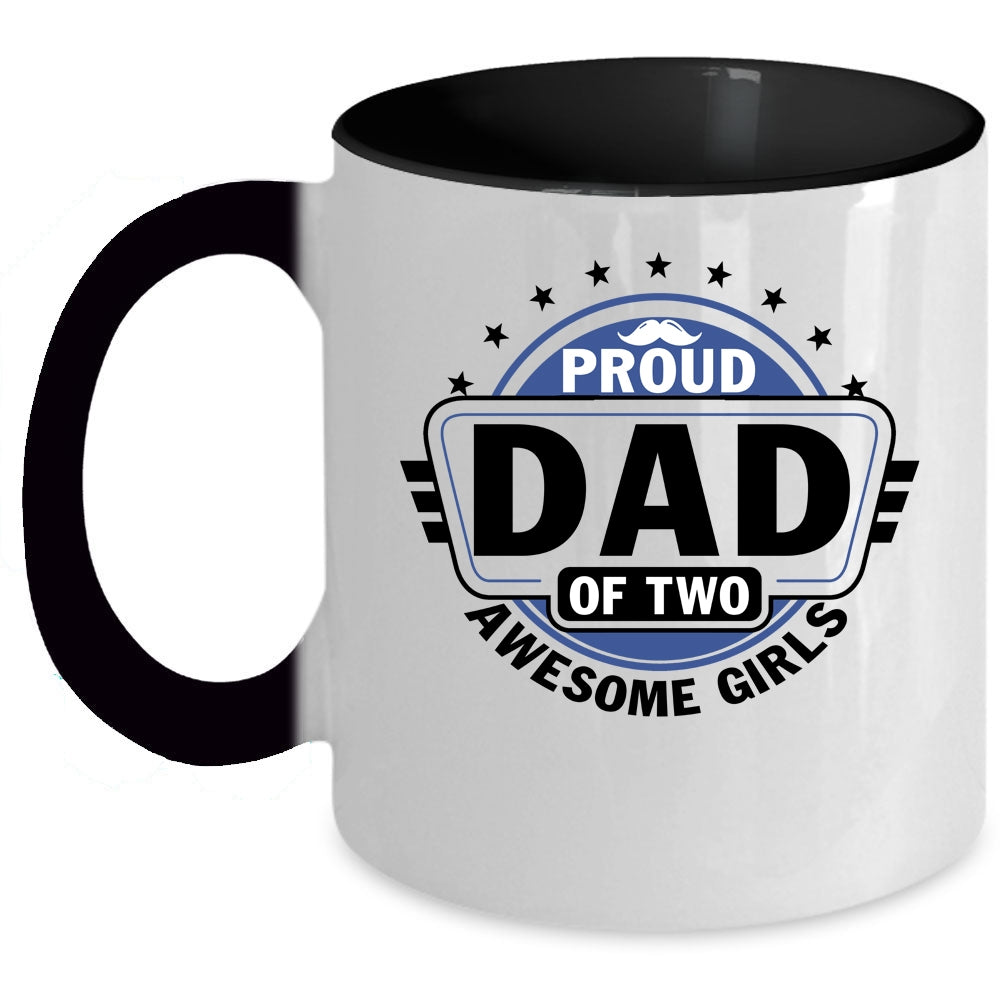 Cool Dad Coffee Mug, Proud Dad Of Two Awesome Girls Accent Mug