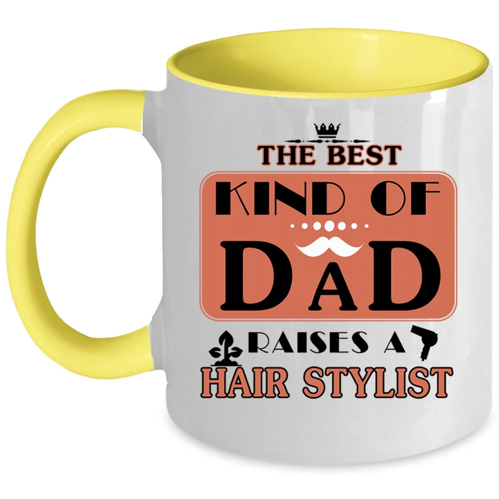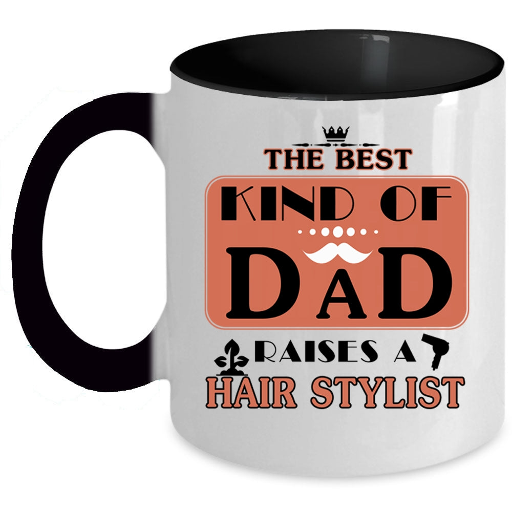 Cool Dad Coffee Mug, The Best Kind Of Dad Raises A Hair Stylist Accent Mug