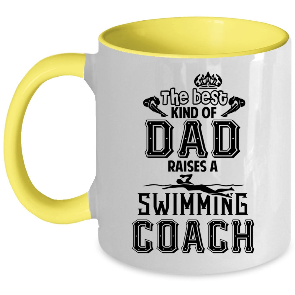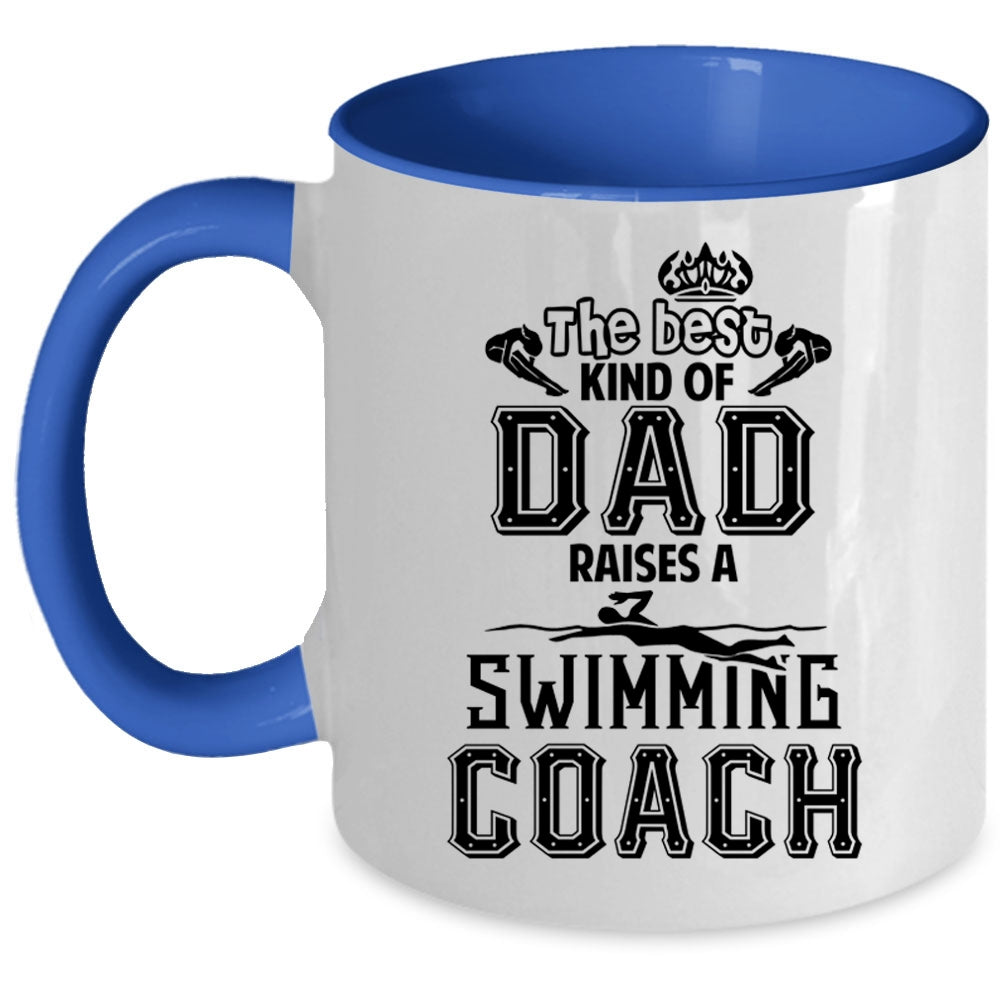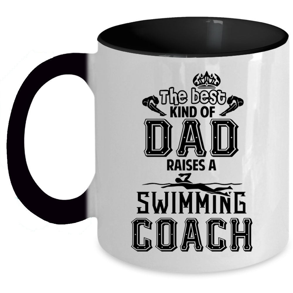 Cool Dad Coffee Mug, The Best Kind Of Dad Raises Swimming Coach Accent Mug