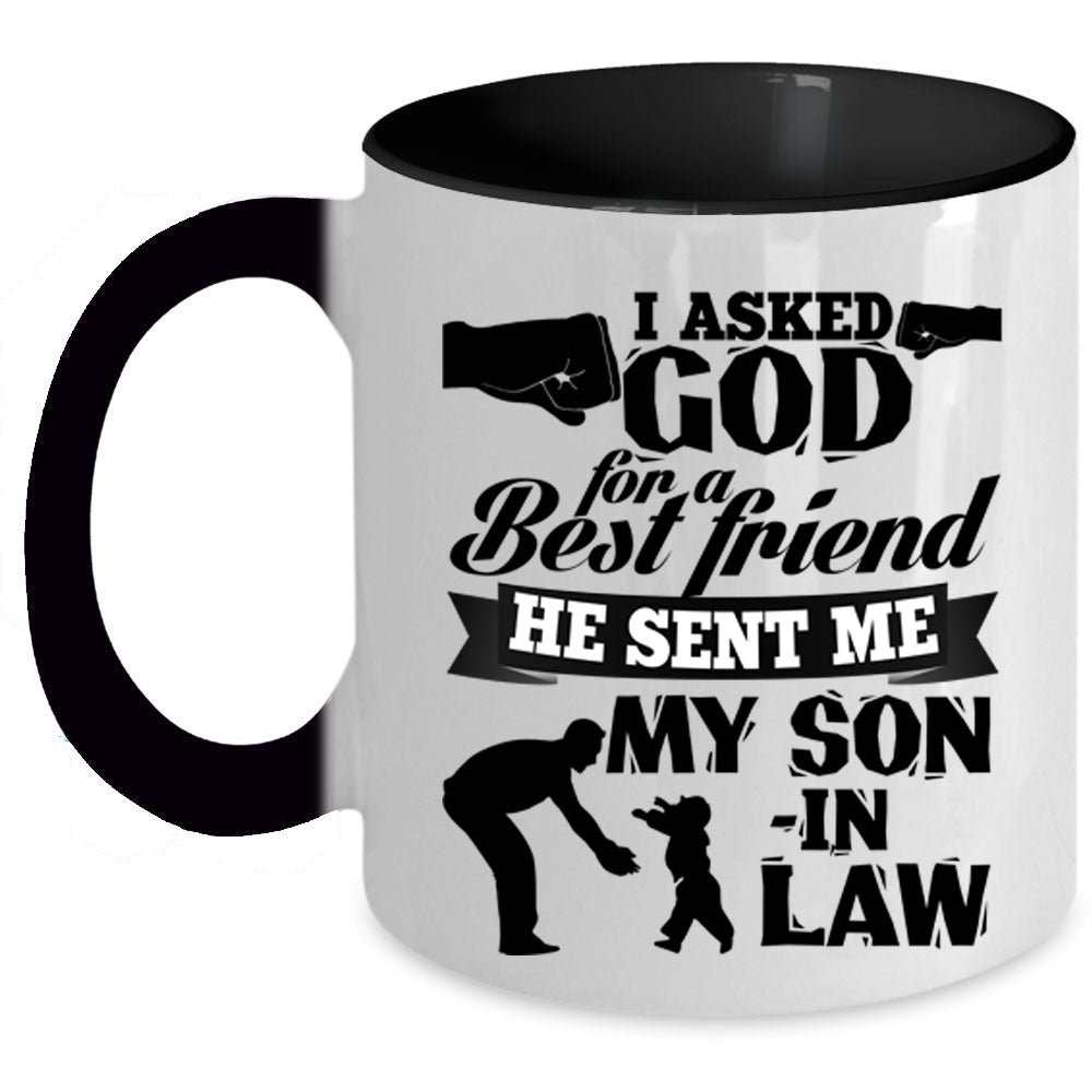Cool Dad In Law Coffee Mug, God Sent Me My Son In Law Accent Mug