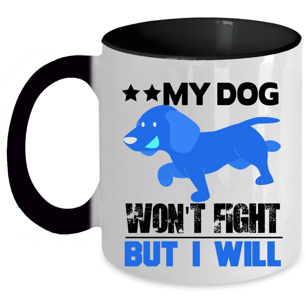 Cool Dogs Coffee Mug, My Dog Won't Fight But I Will Accent Mug