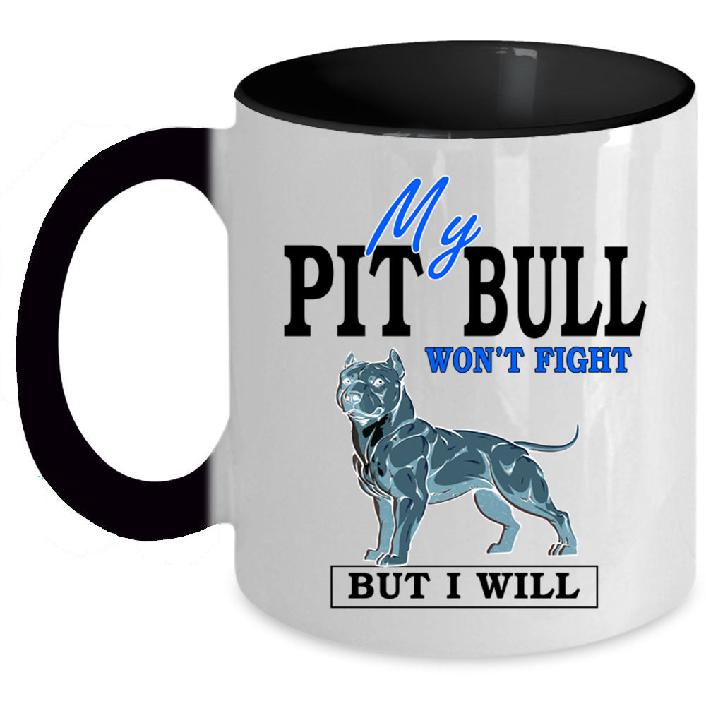 Cool Dogs Coffee Mug, My Pit Bull Won't Fight Accent Mug