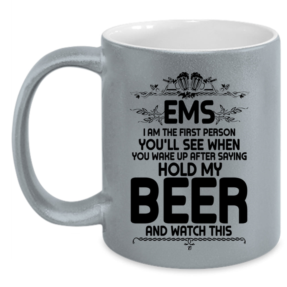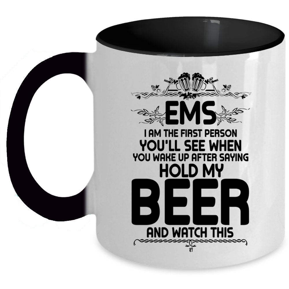 Cool Drinking Beer Coffee Mug, EMS I Am The First Person You'll See Accent Mug